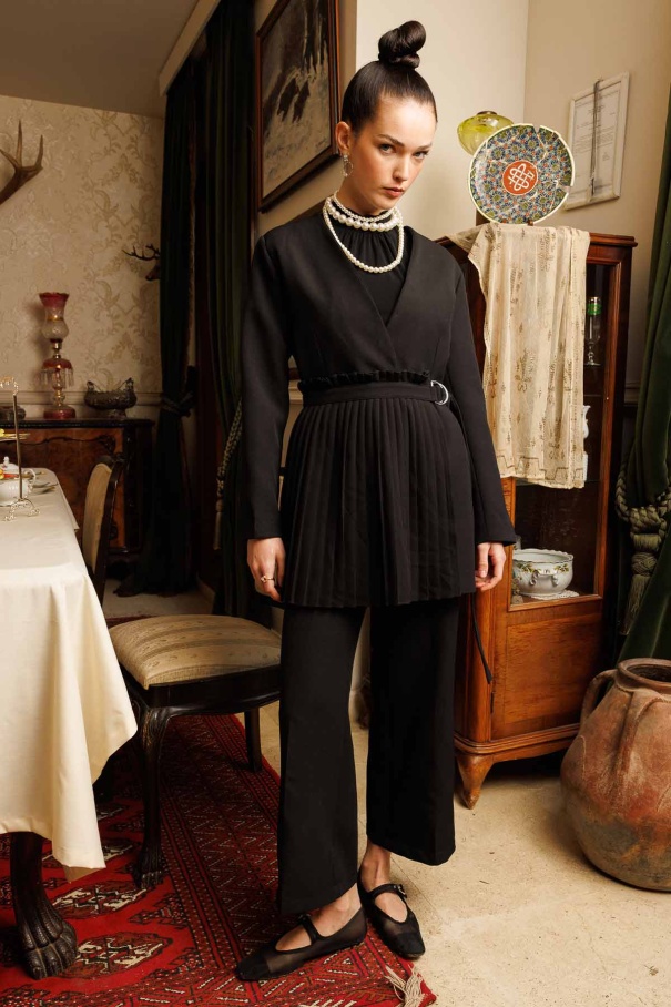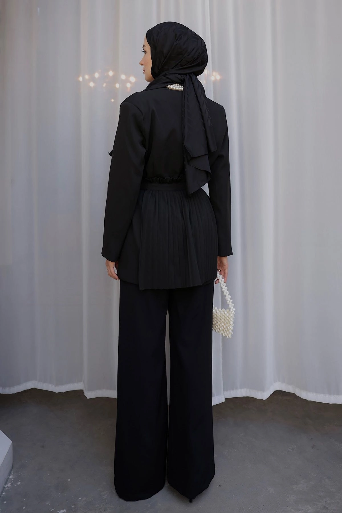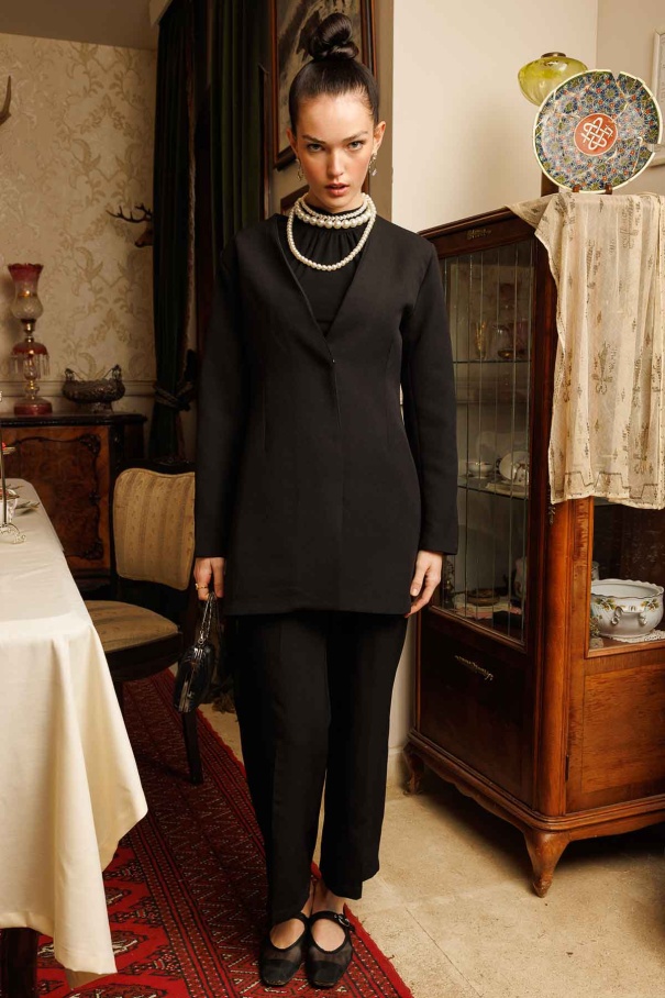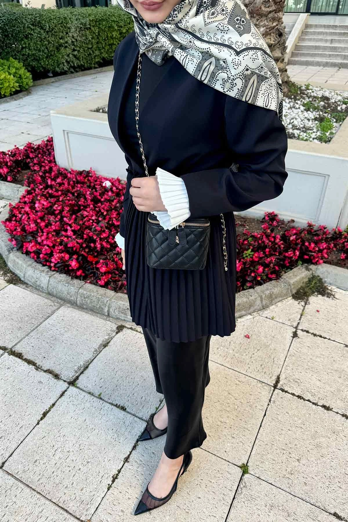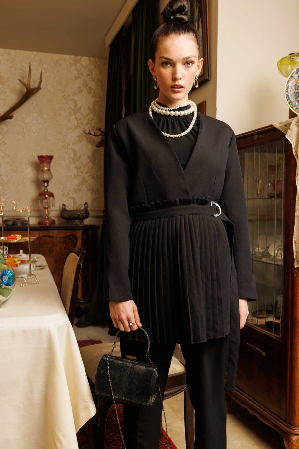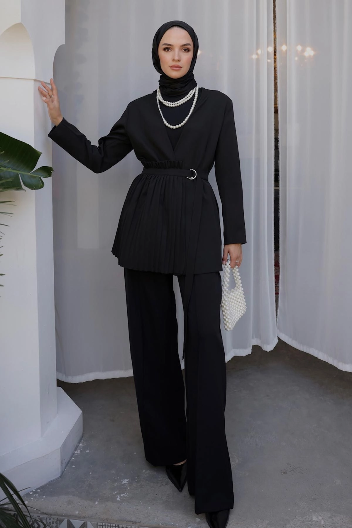 Pilise Aksesuarlı Blazer Siyah Ceket