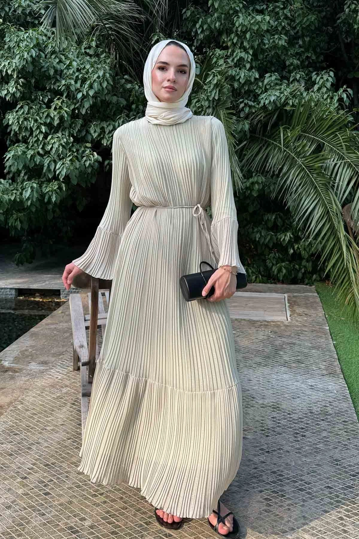 Pilise Detaylı Rahat Form Adaçayı Elbise
