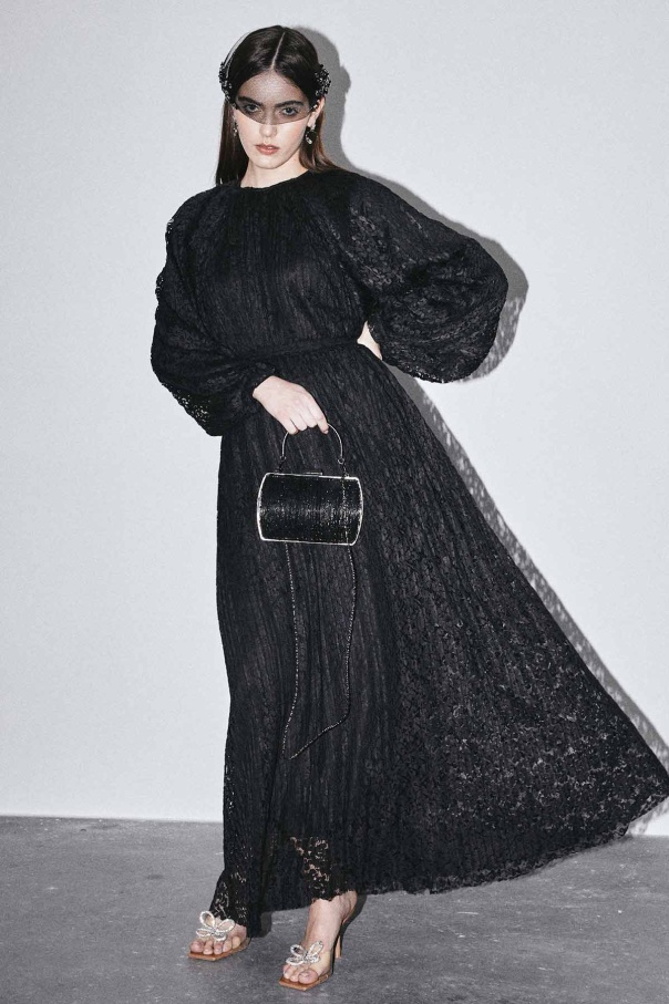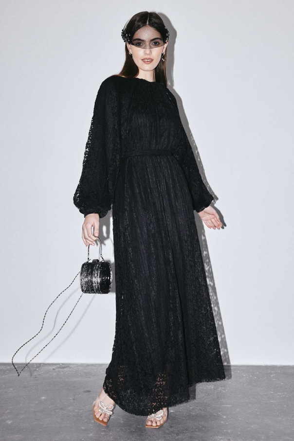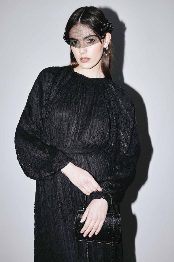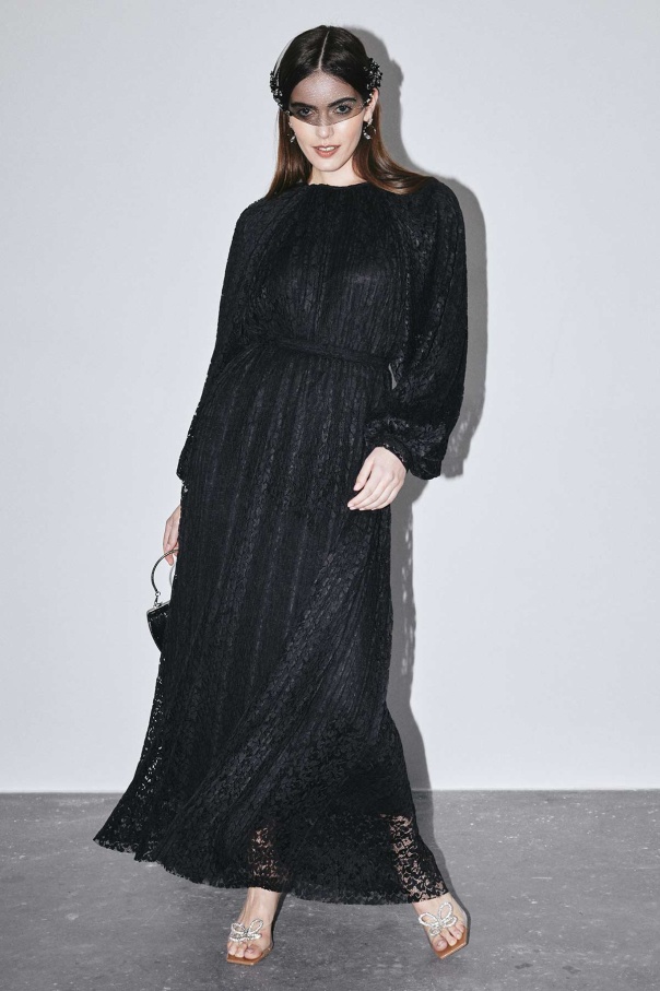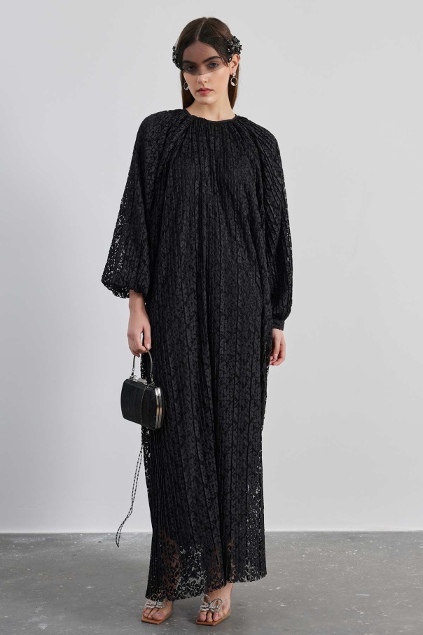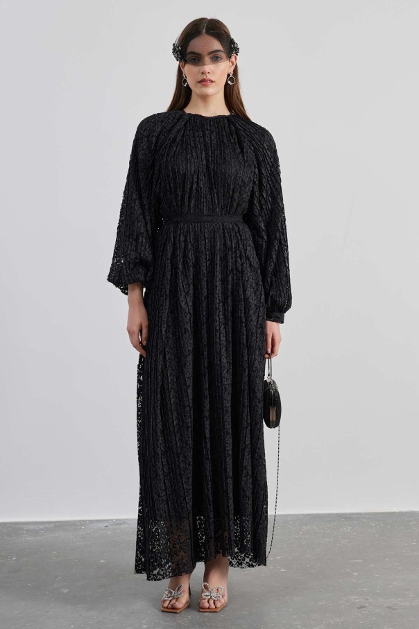 Piliseli Dantelli Elbise - Siyah