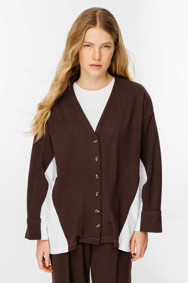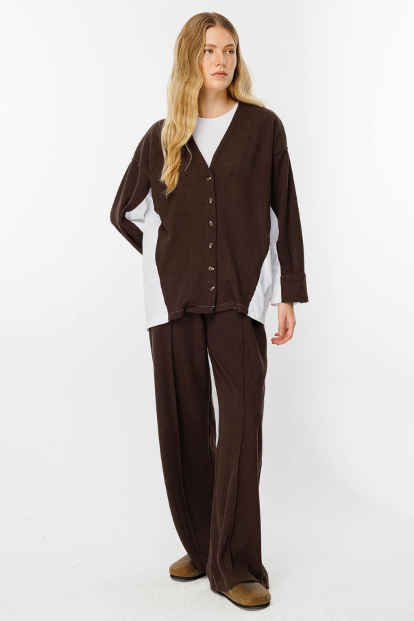 Poplin Triko Hırka Detaylı Kahve Pantolon Takım