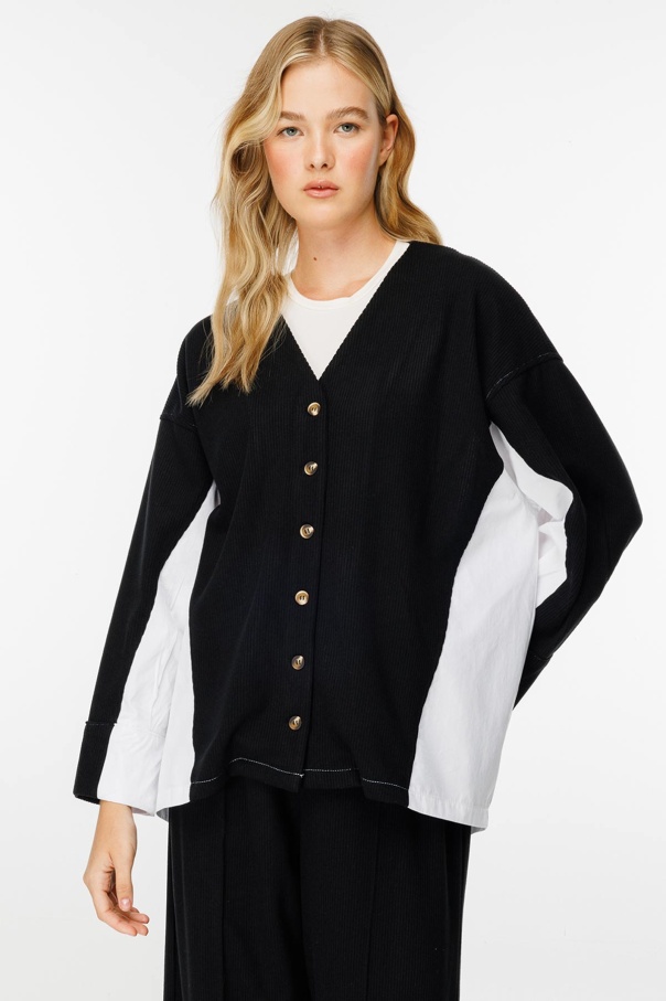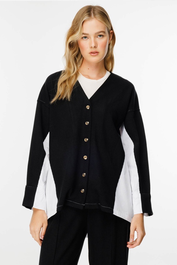 Poplin Triko Hırka Detaylı Siyah Pantolon Takım