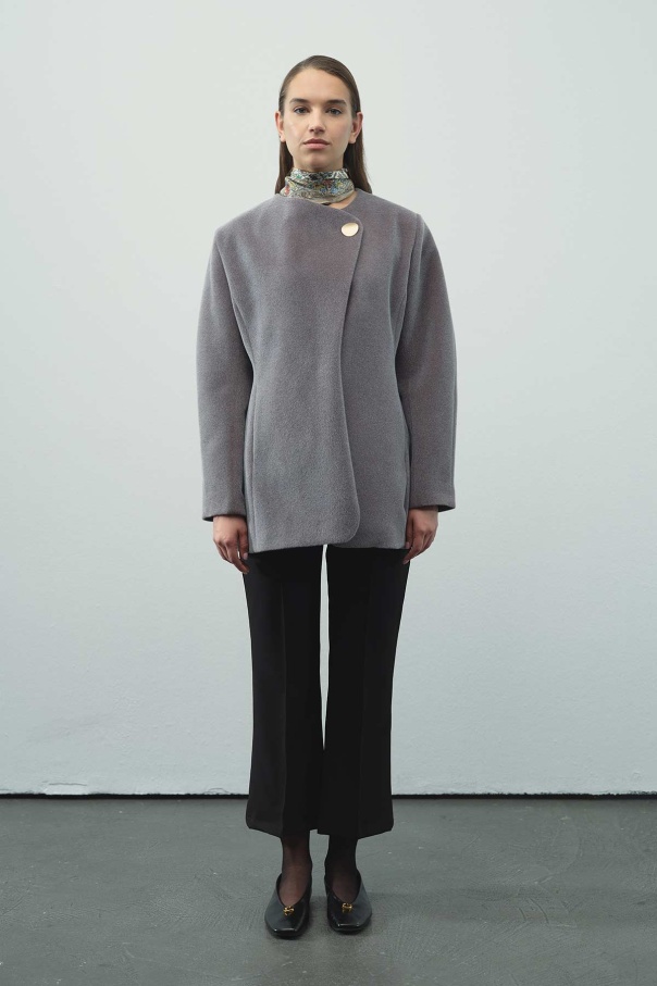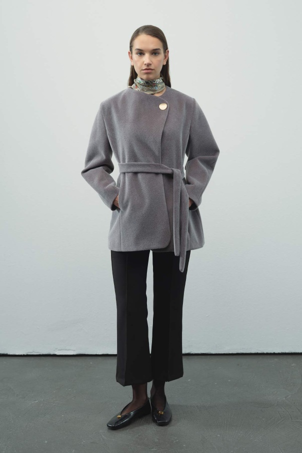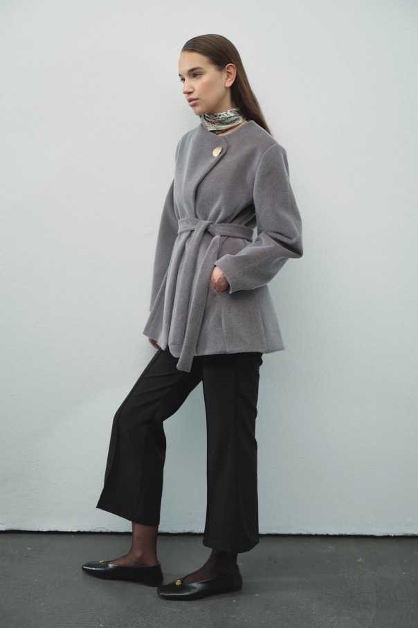 Premium Asimetrik Yaka Kısa Füme Kaban