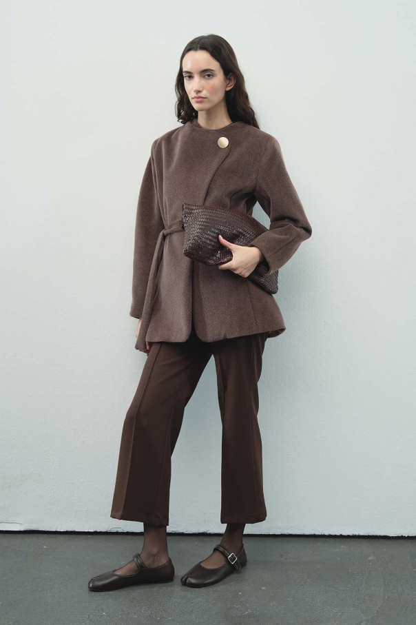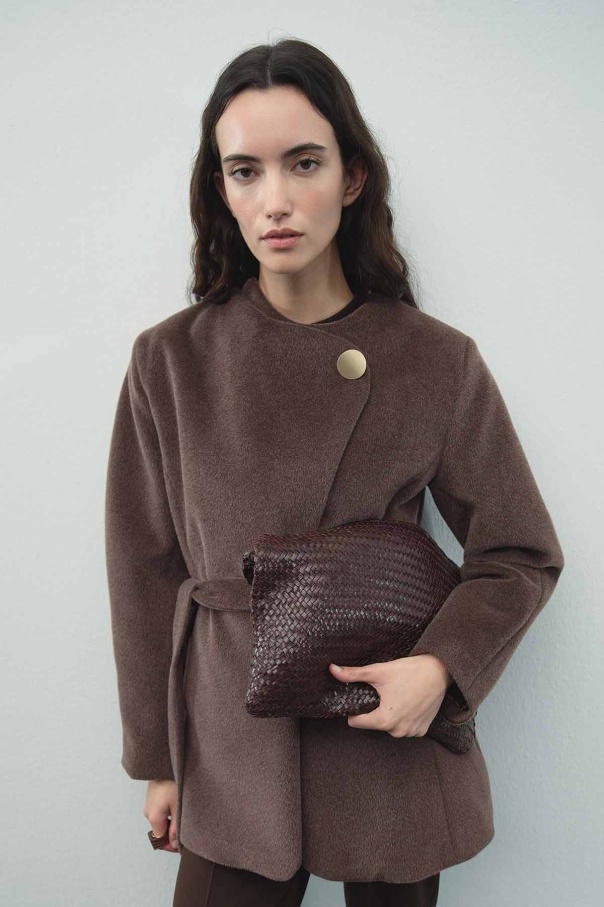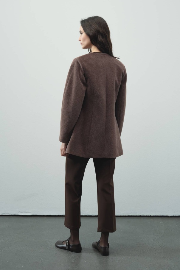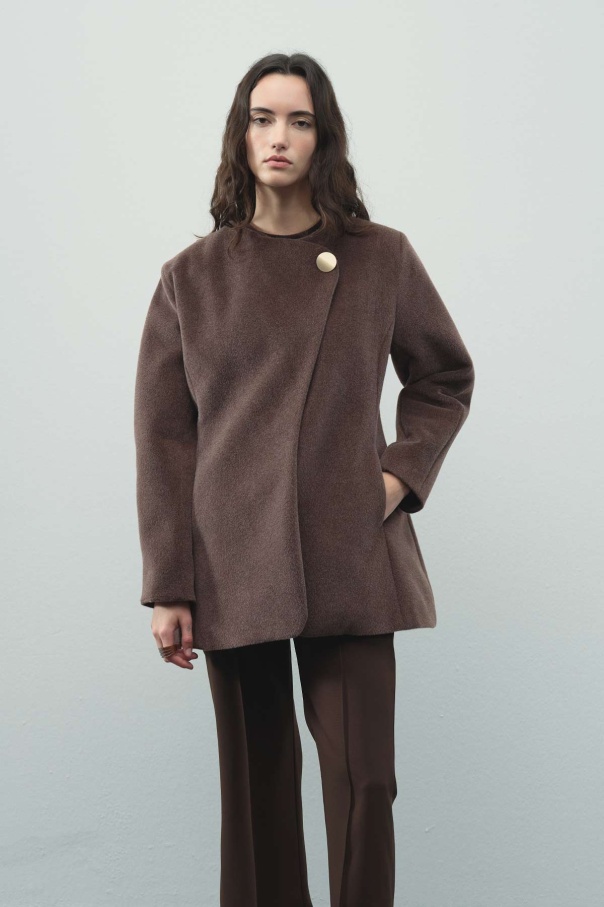 Premium Asimetrik Yaka Kısa Kahve Kaban