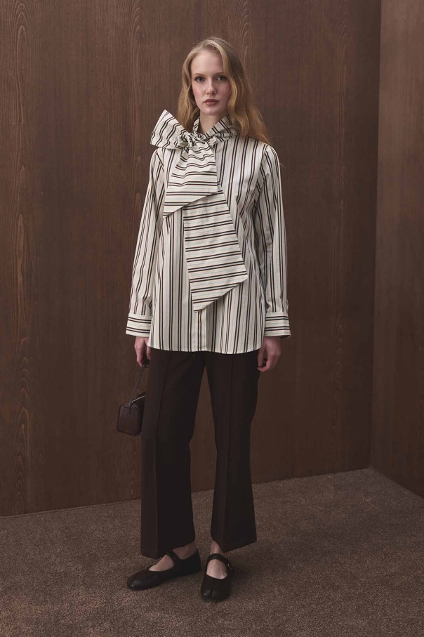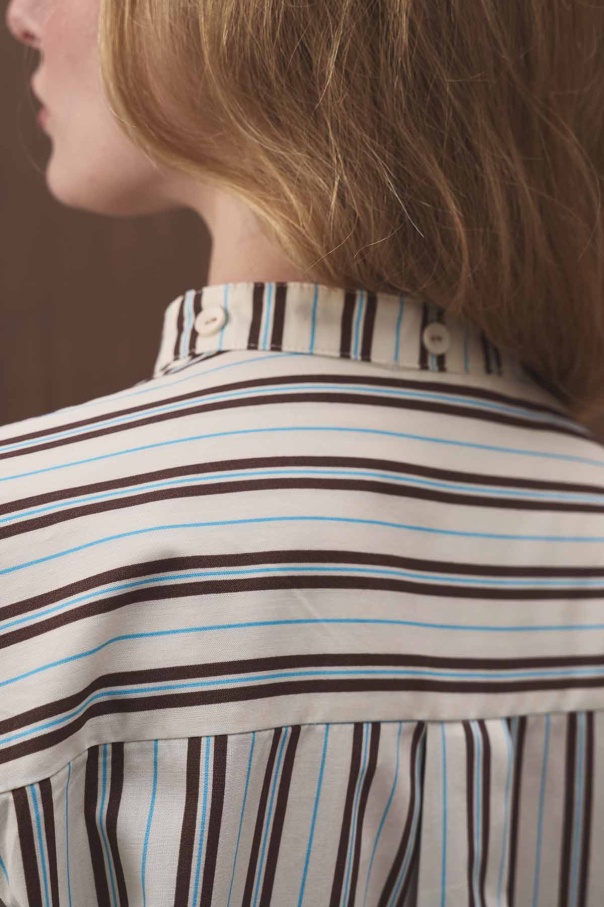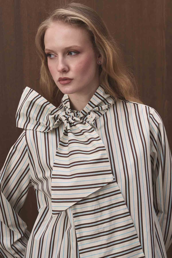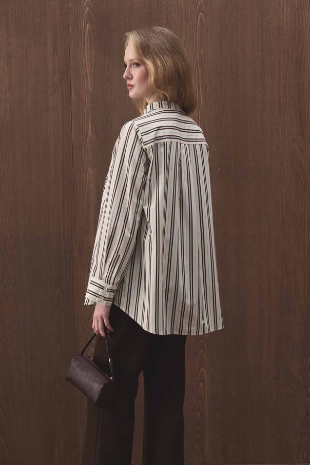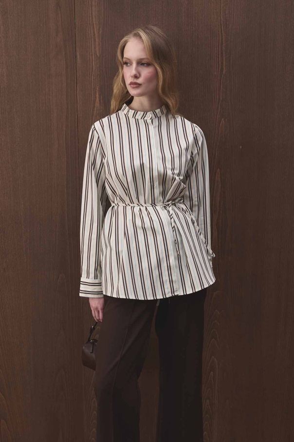 Premium Çıkarılabilir Bağlama Detaylı Çizgili Poplin Ekru Gömlek