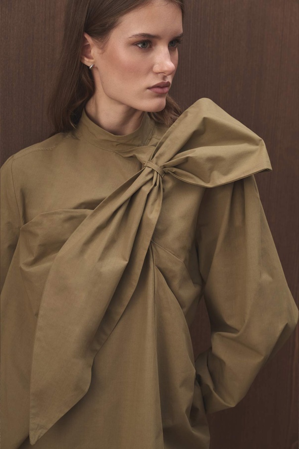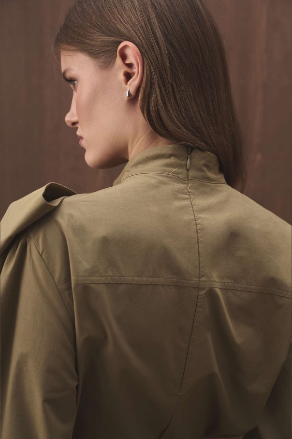 Premium Fiyonk Detaylı Poplin Haki Gömlek