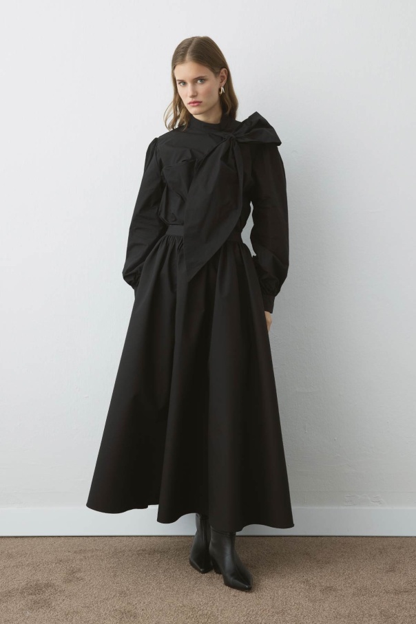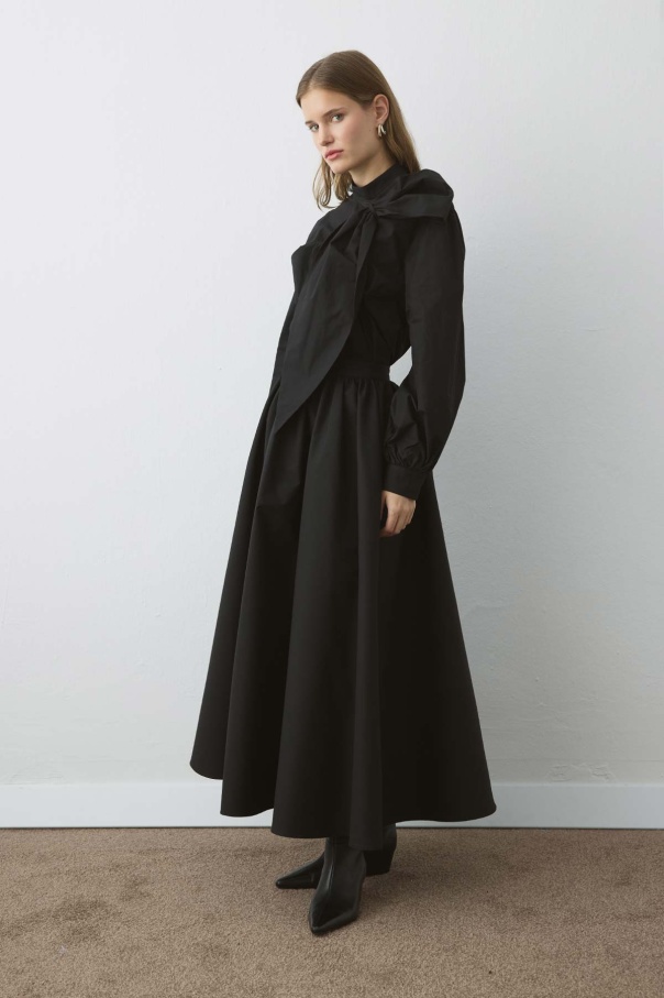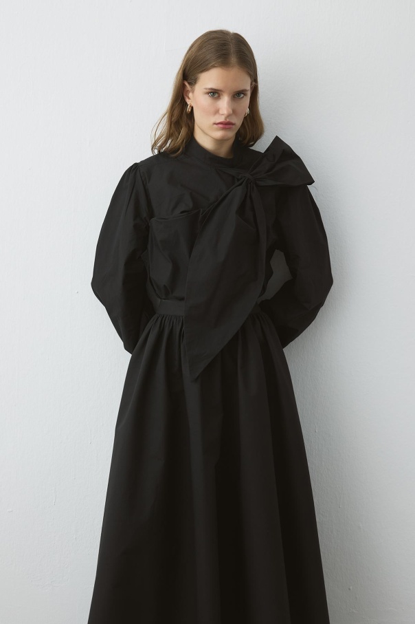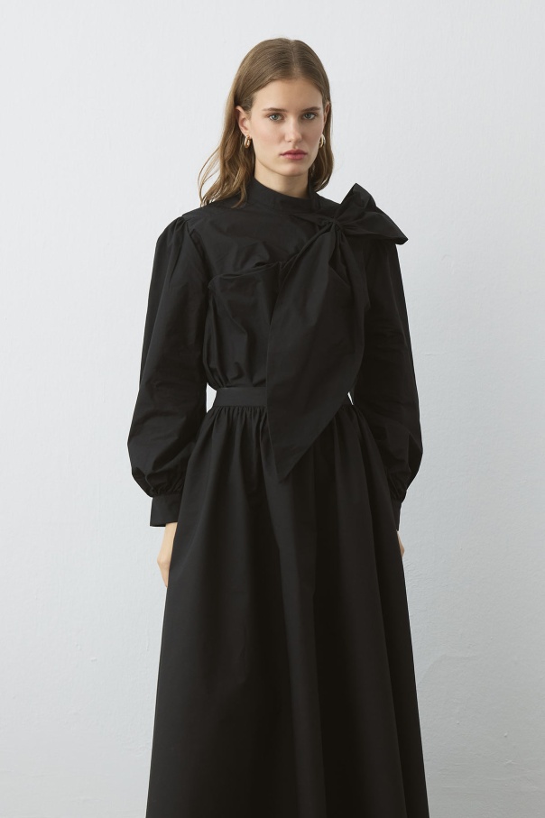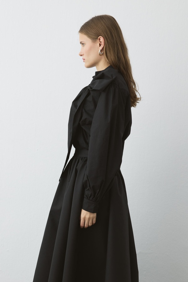 Premium Fiyonk Detaylı Poplin Siyah Gömlek