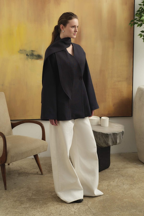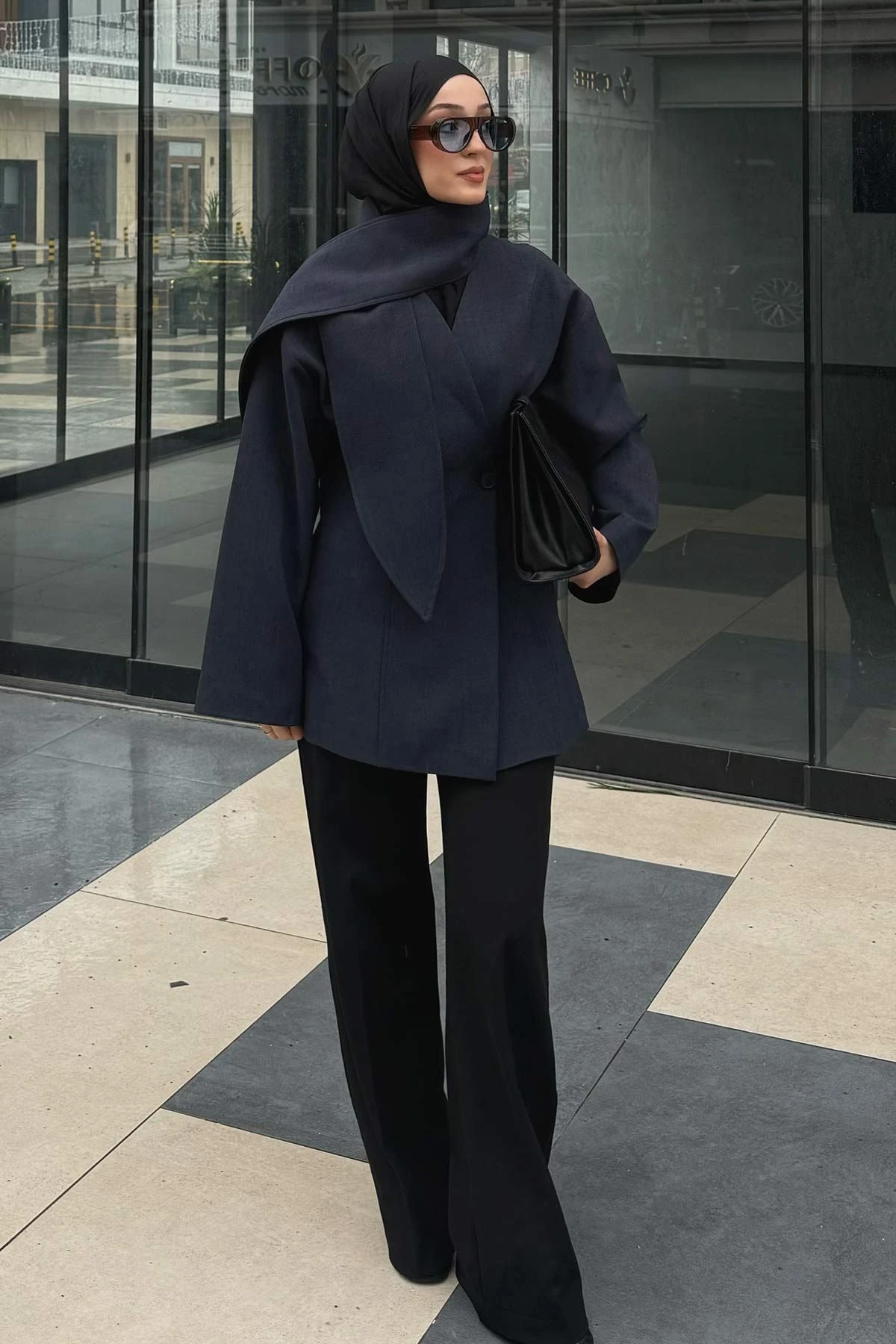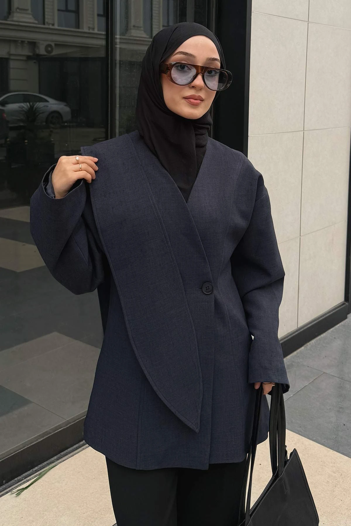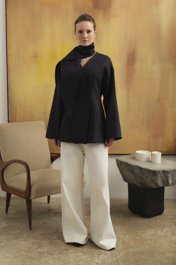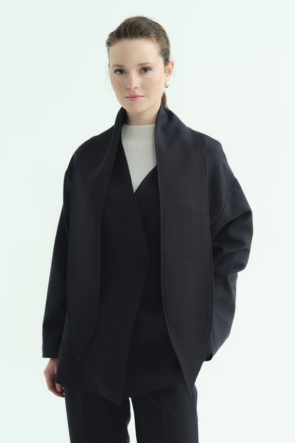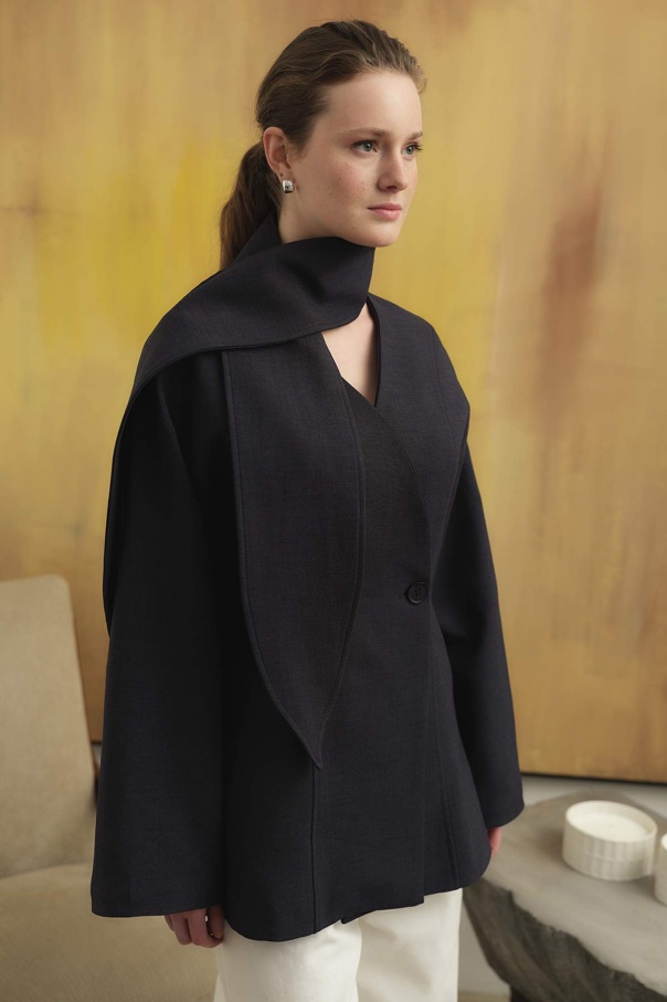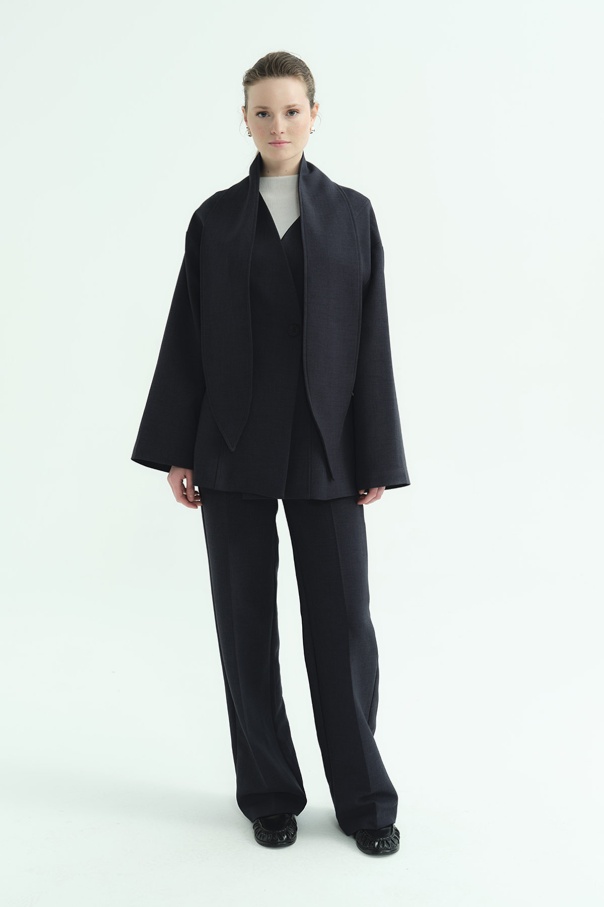 Premium Fular Bağlamalı Lacivert Ceket