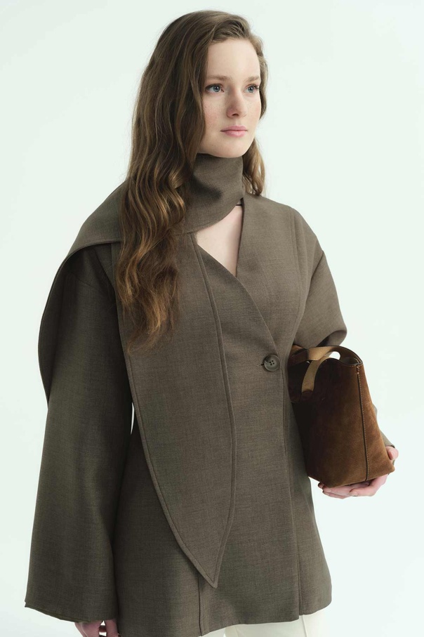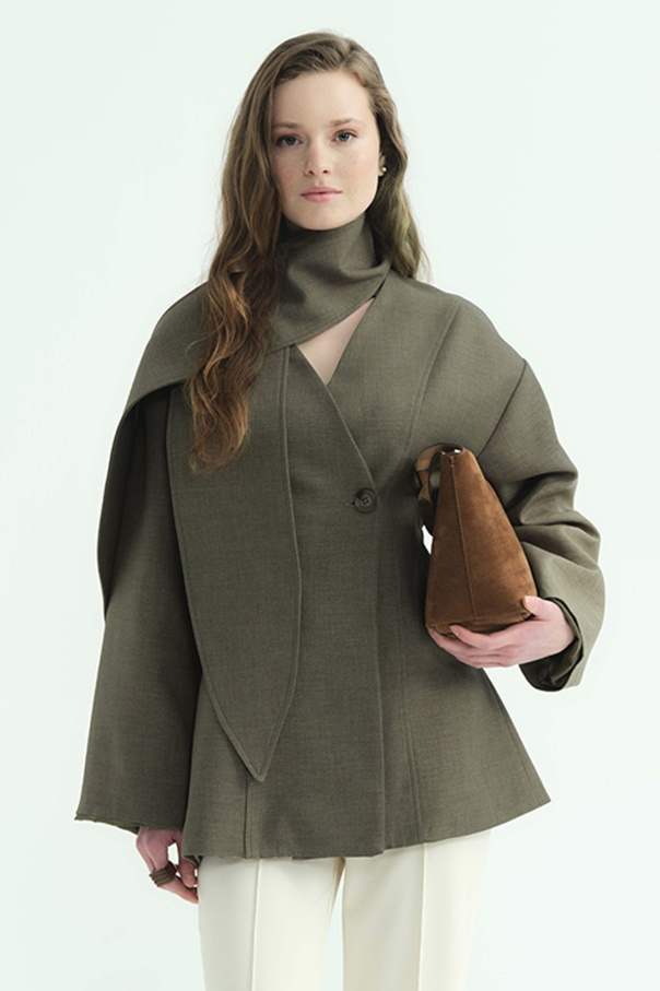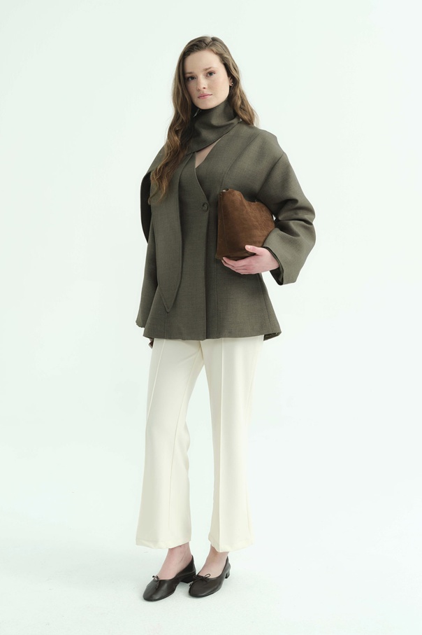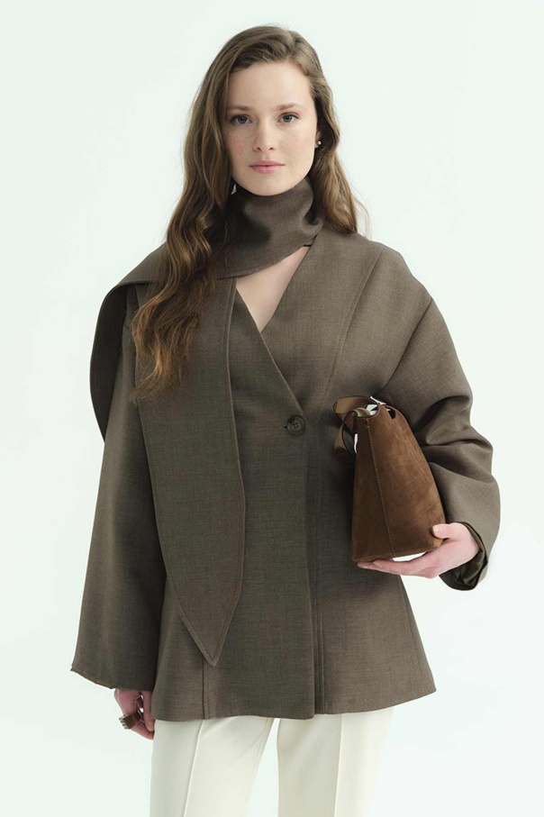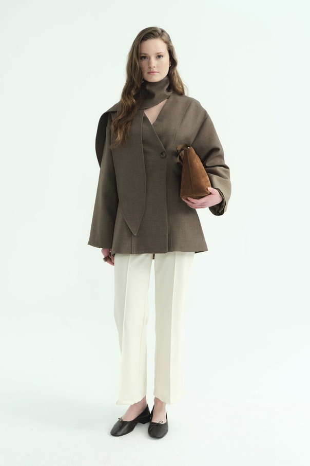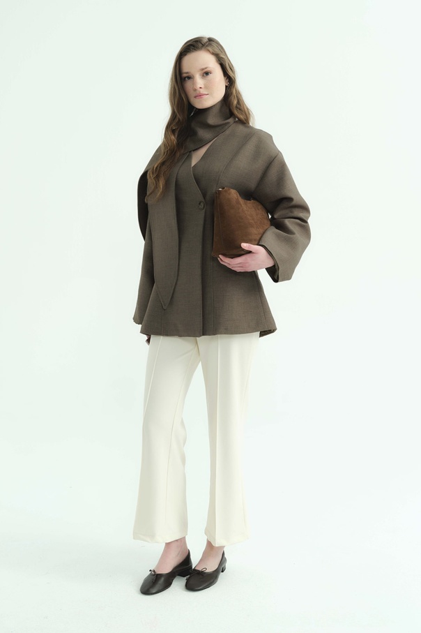 Premium Fular Bağlamalı Vizon Ceket