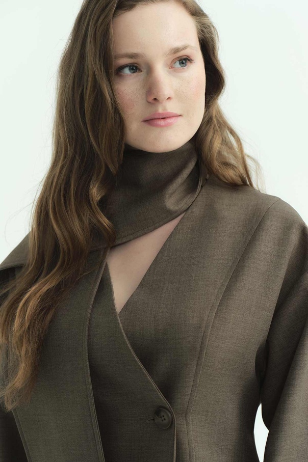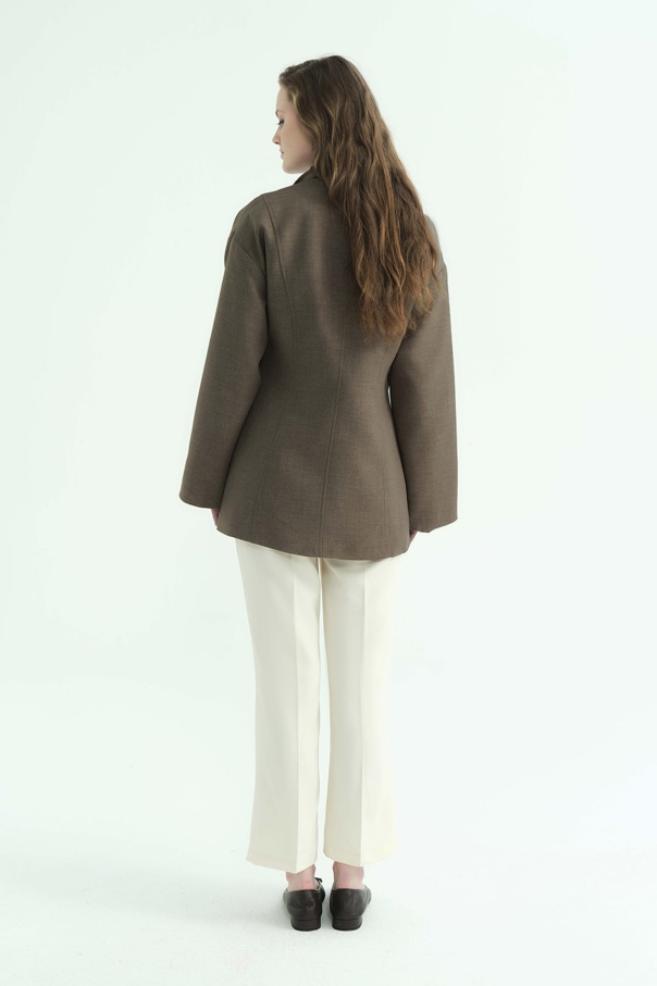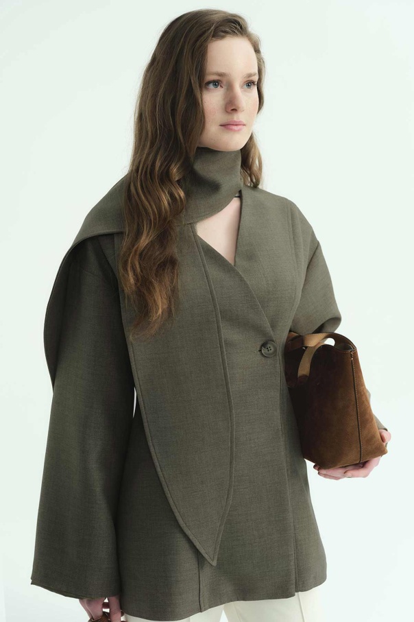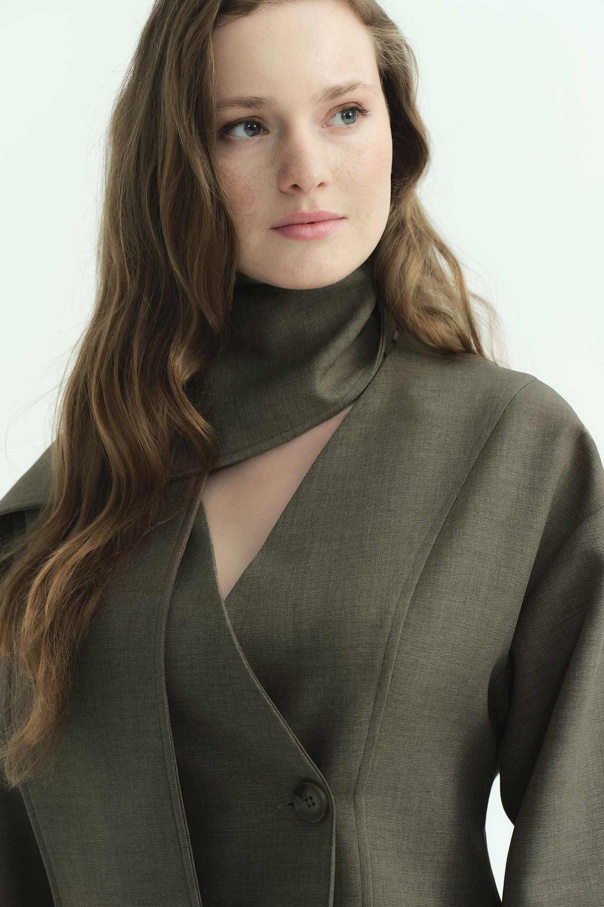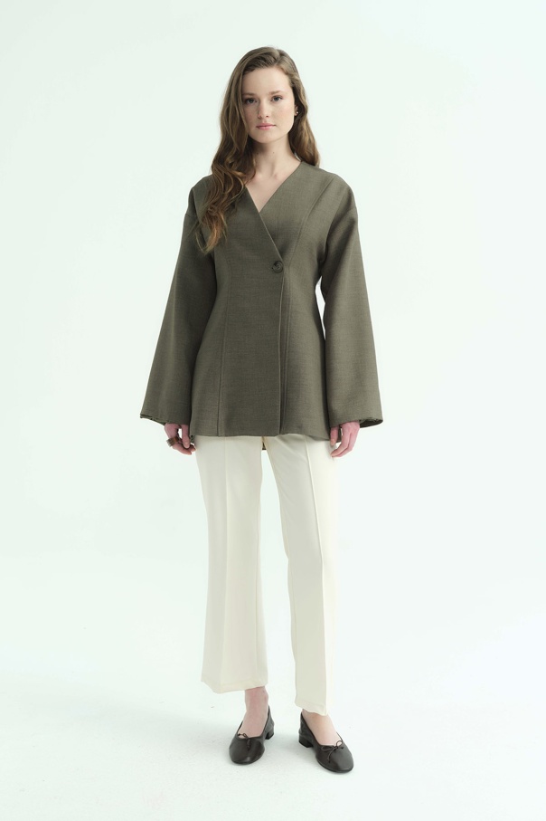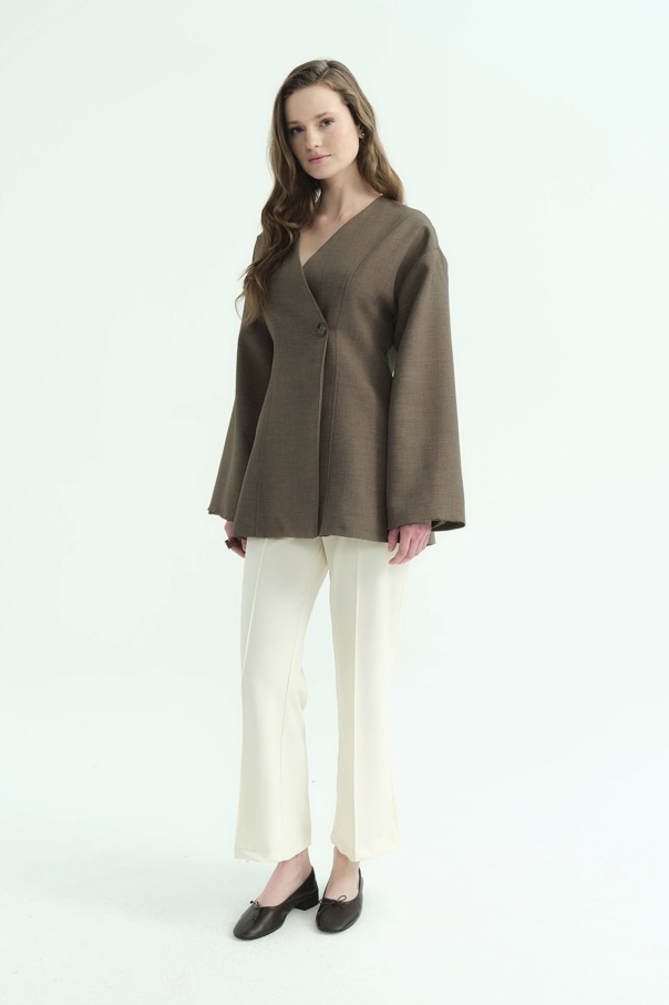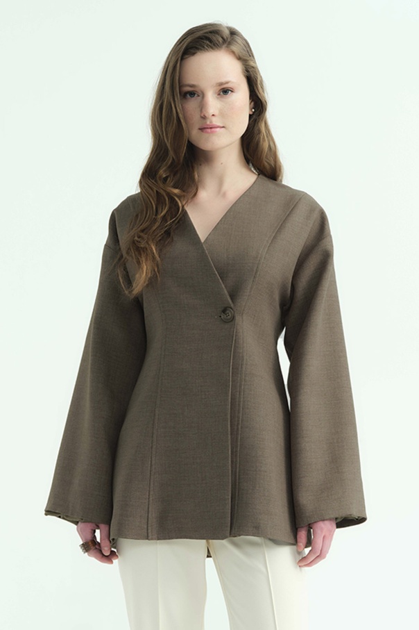 Premium Fular Bağlamalı Vizon Ceket