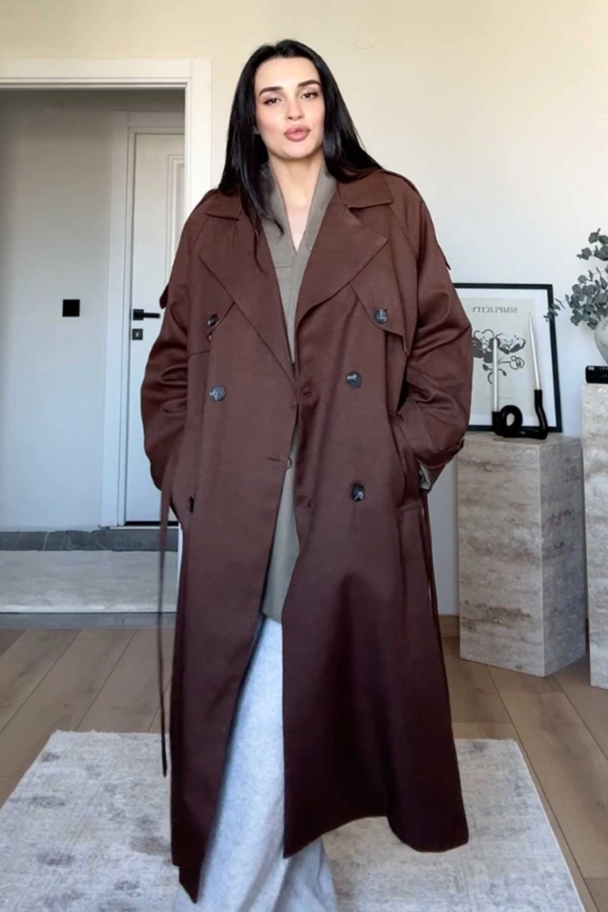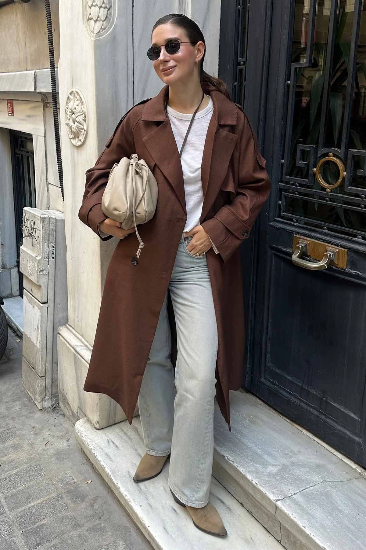 Premium Kruvaze Kahve Trençkot
