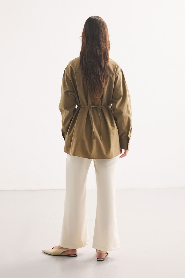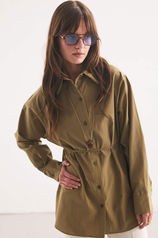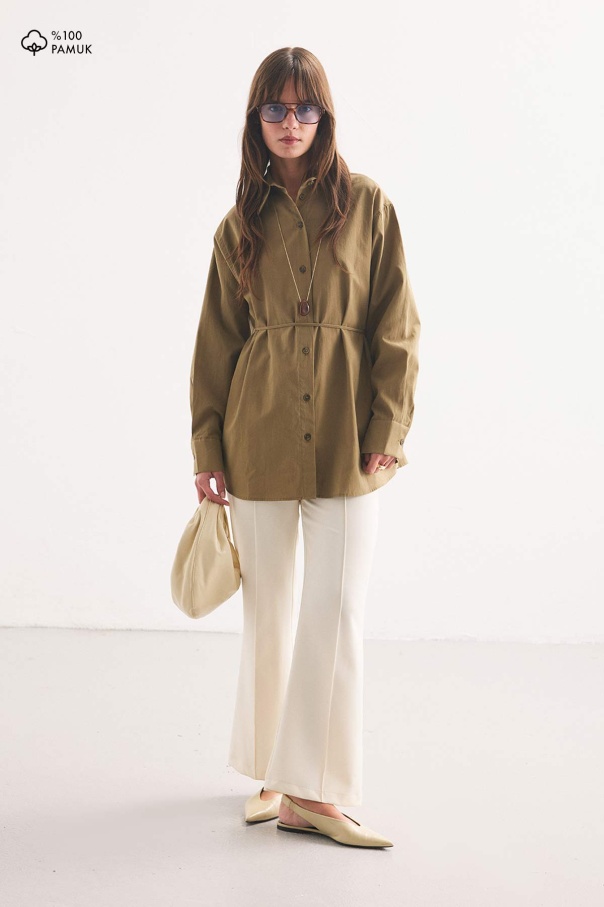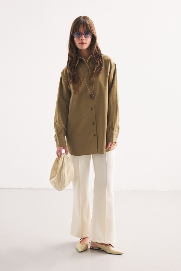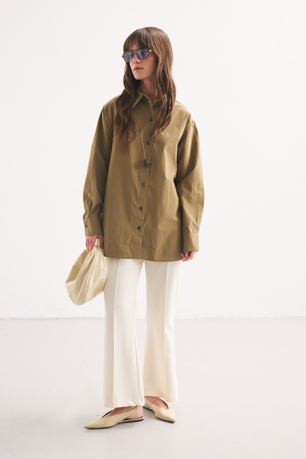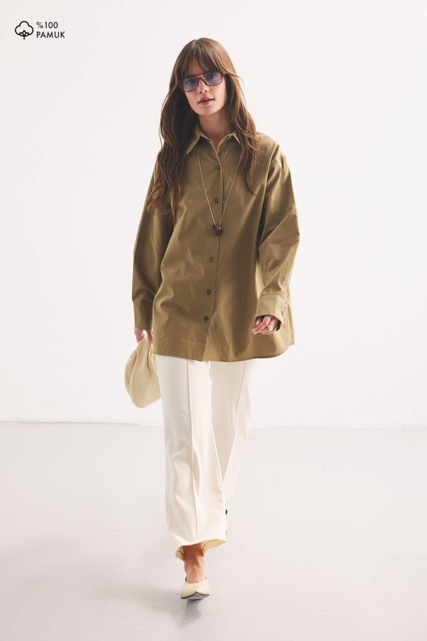 Premium Pamuk Oversize Olive Gömlek