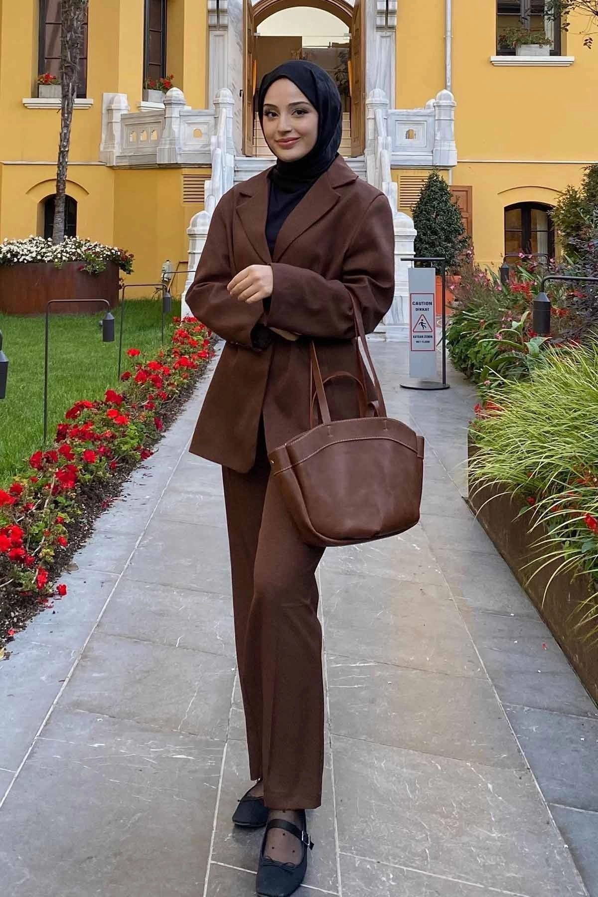 Premium Pileli Palazzo Kahve Pantolon