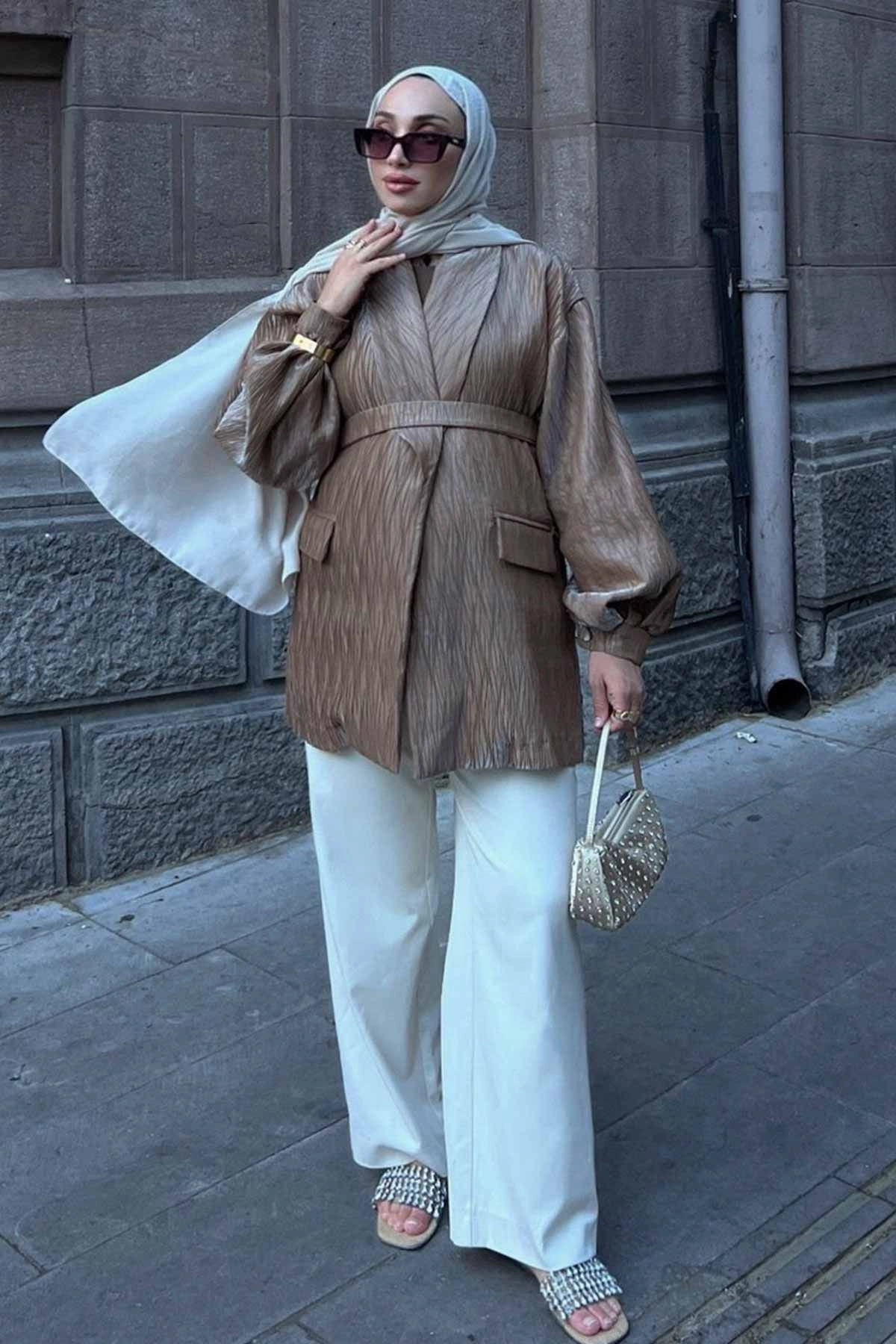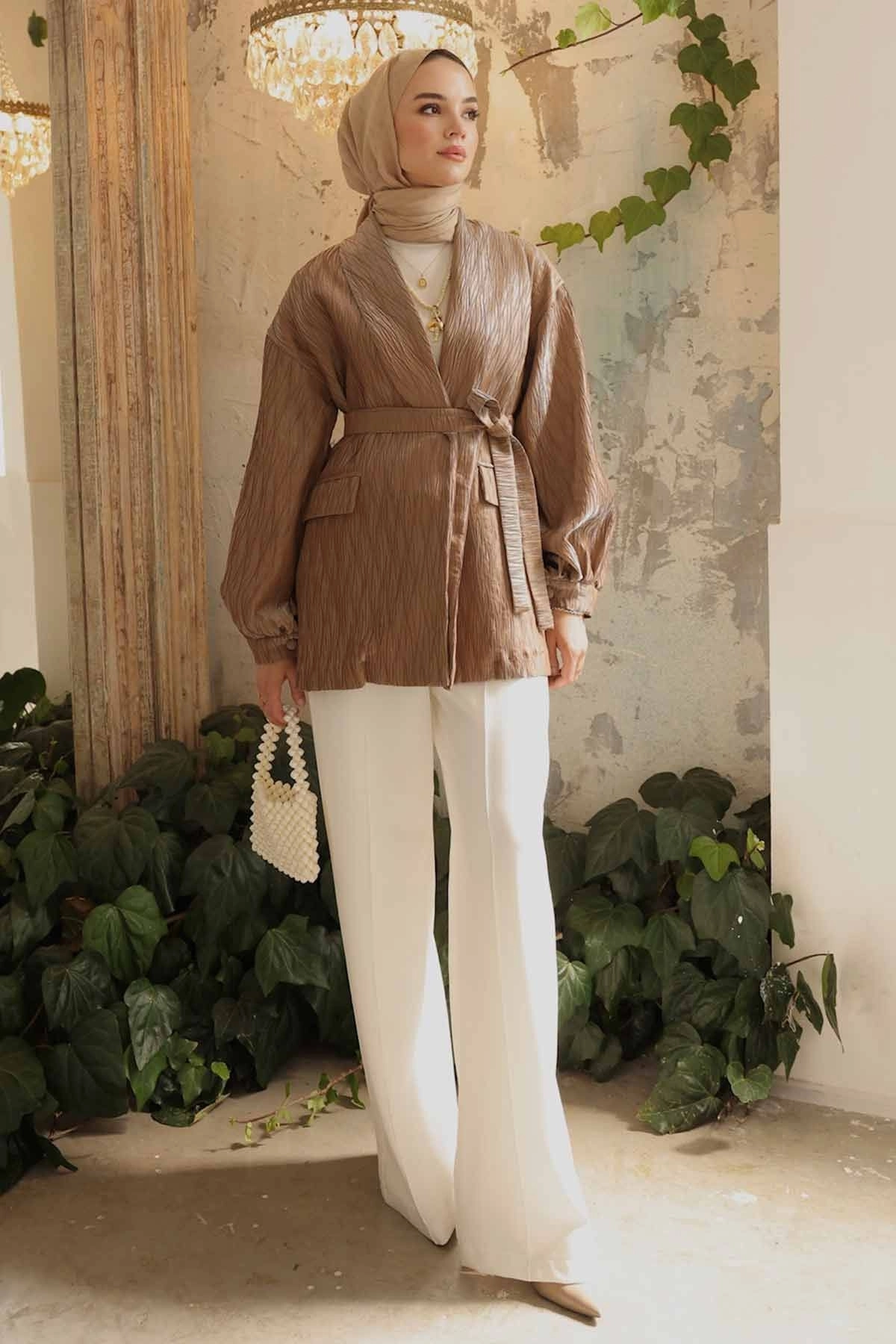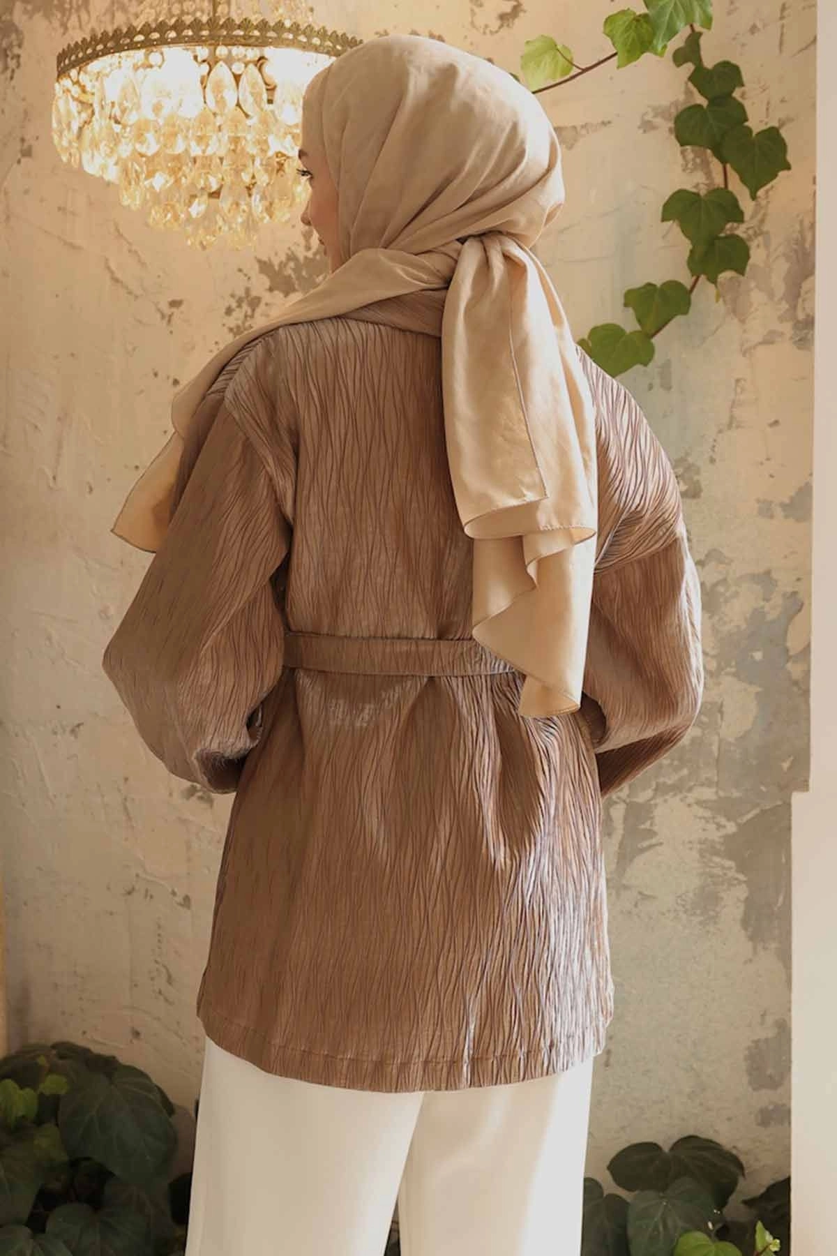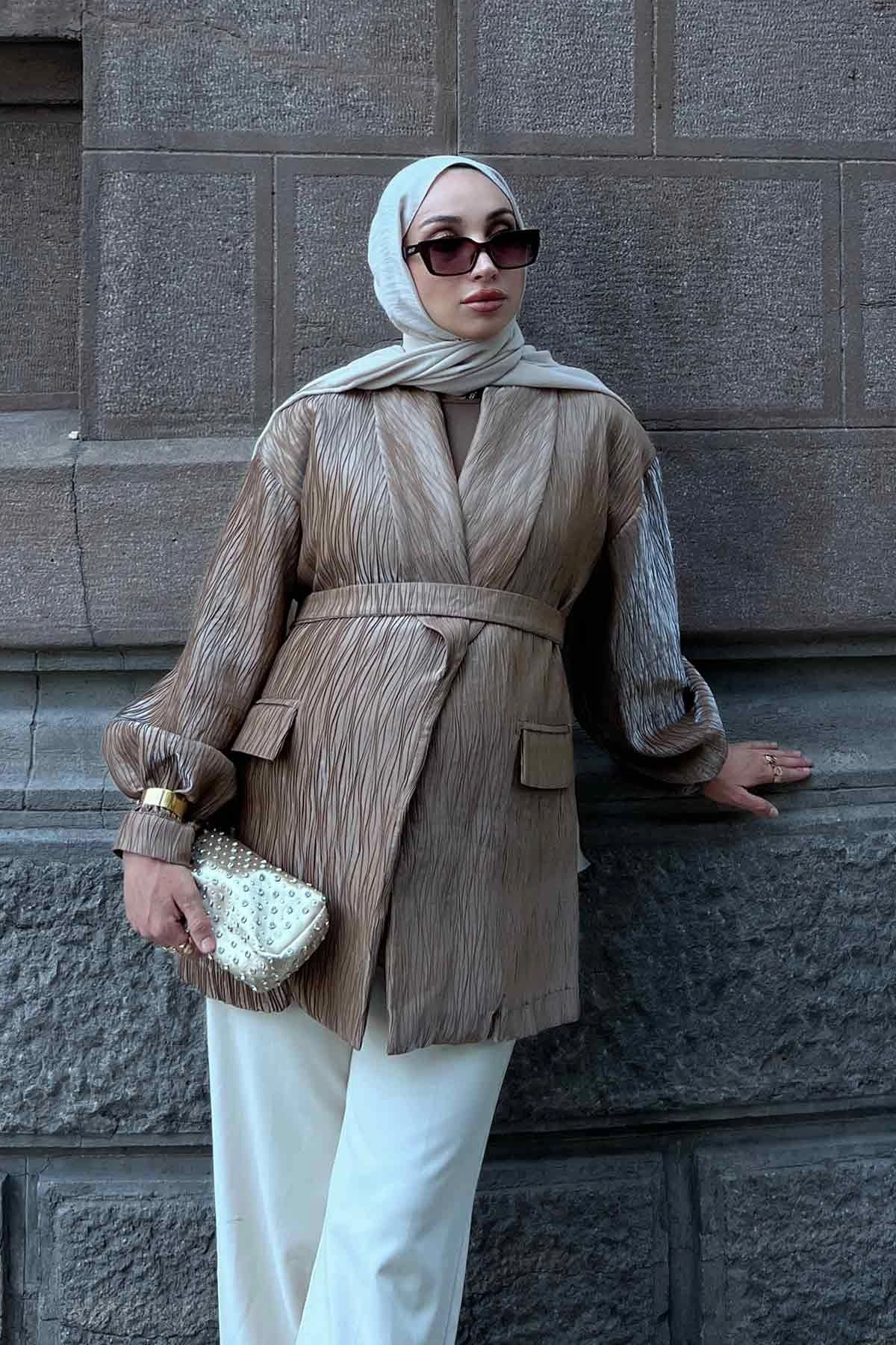 Premium Pilise Dokulu Camel Ceket