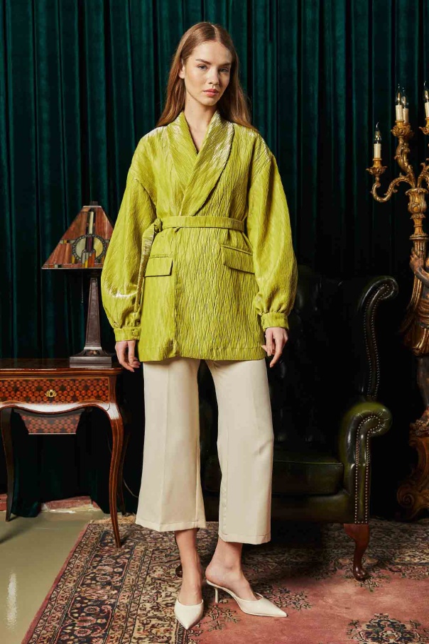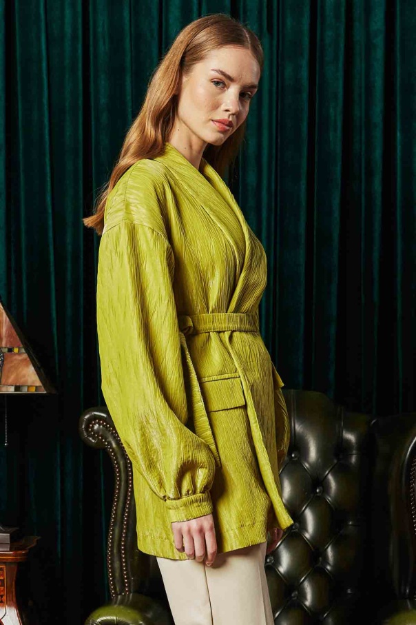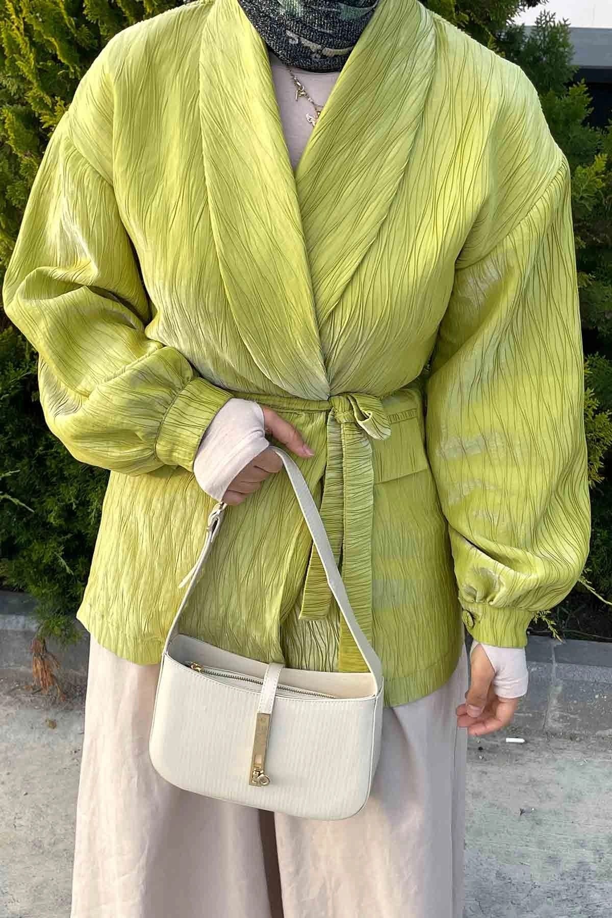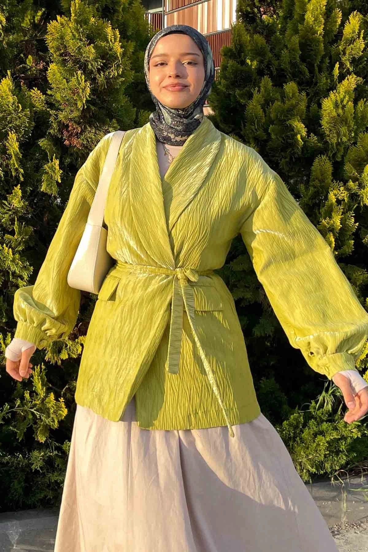 Premium Pilise Dokulu Yağ Yeşili Ceket