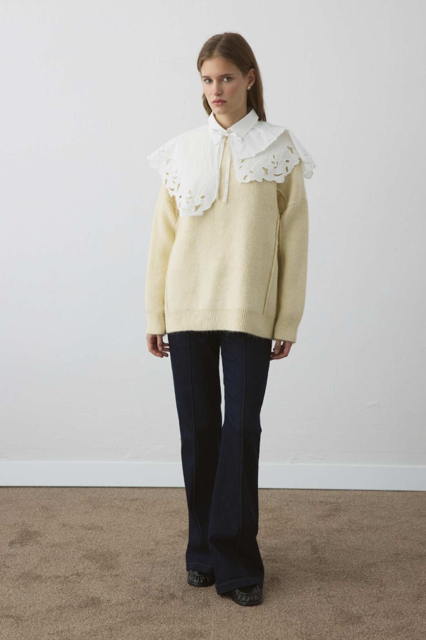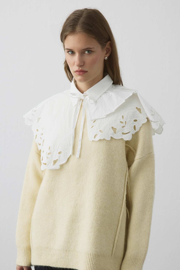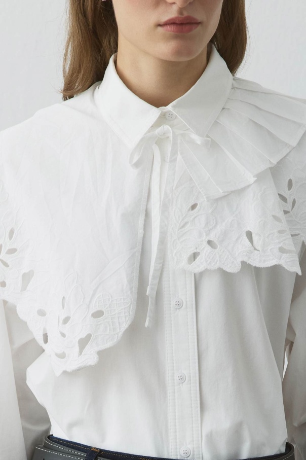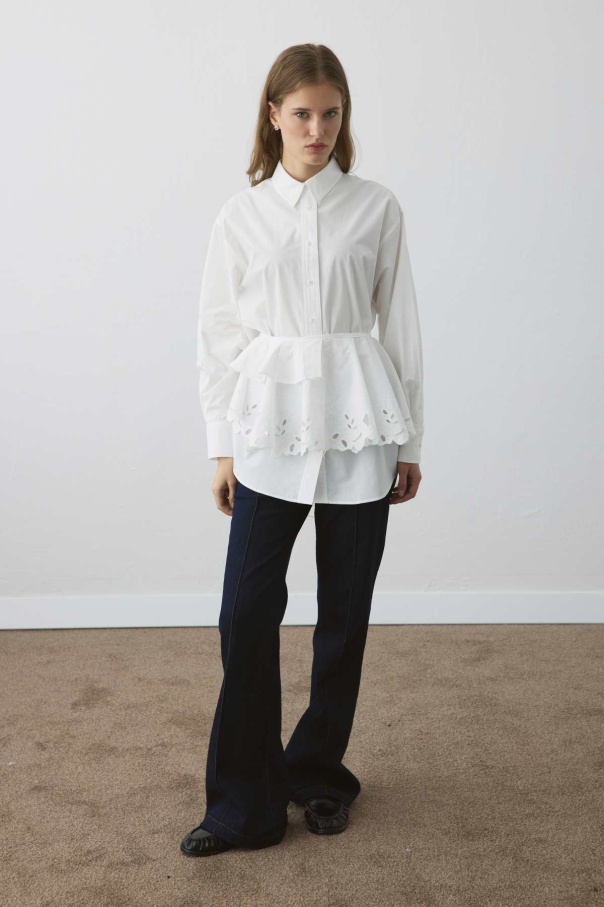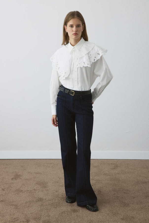 Premium Poplin Pilise Detaylı Nakışlı Beyaz Yaka