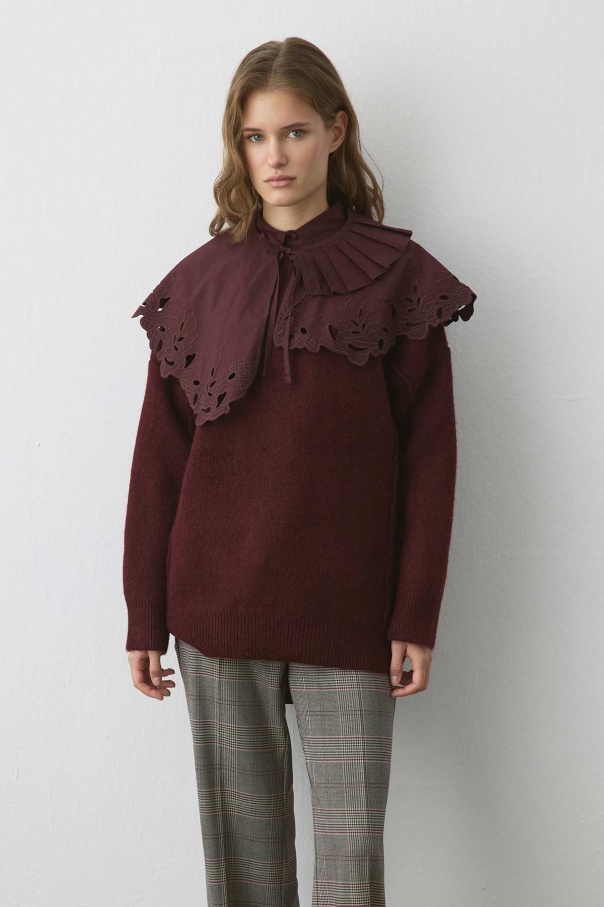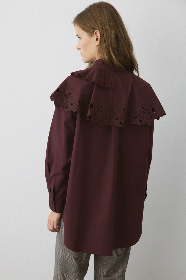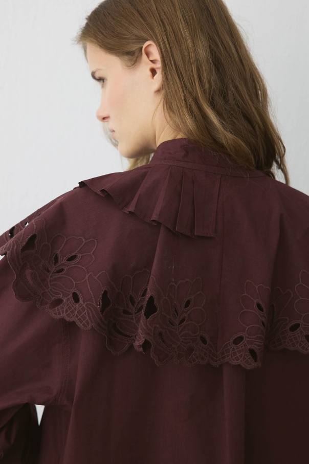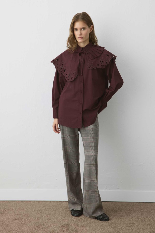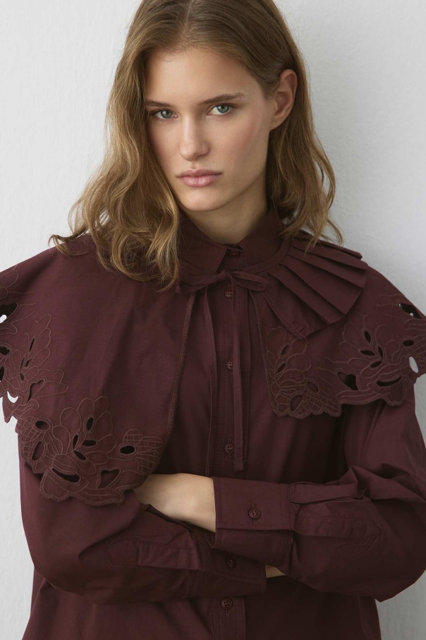 Premium Poplin Pilise Detaylı Nakışlı Bordo Yaka