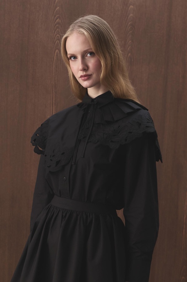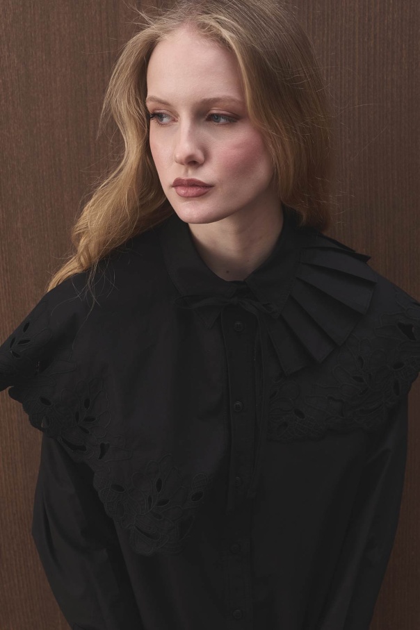 Premium Poplin Pilise Detaylı Nakışlı Siyah Yaka