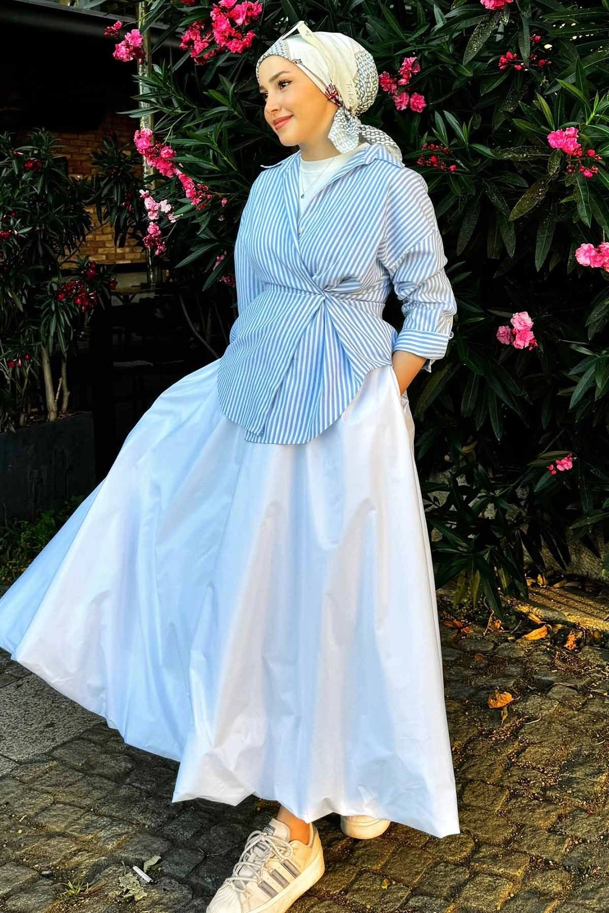 Model Ölçüleri: Boy: 1.74cm, Göğüs: 82cm, Bel: 60cm, Basen: 89cm