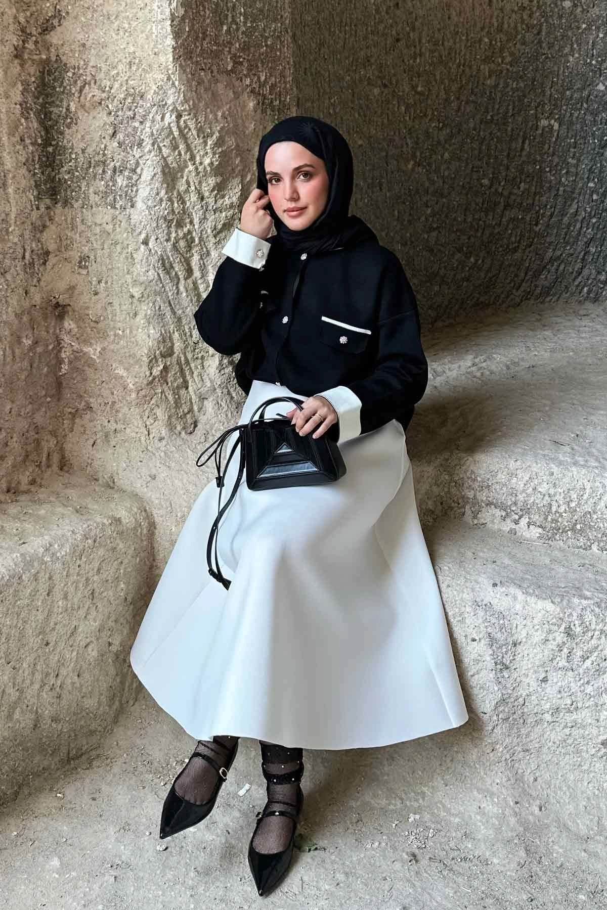 Model Ölçüleri: Boy: 1.72cm, Göğüs: 76cm, Bel: 64cm, Basen: 88cm