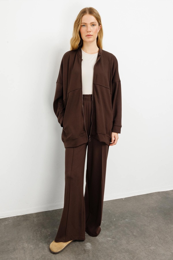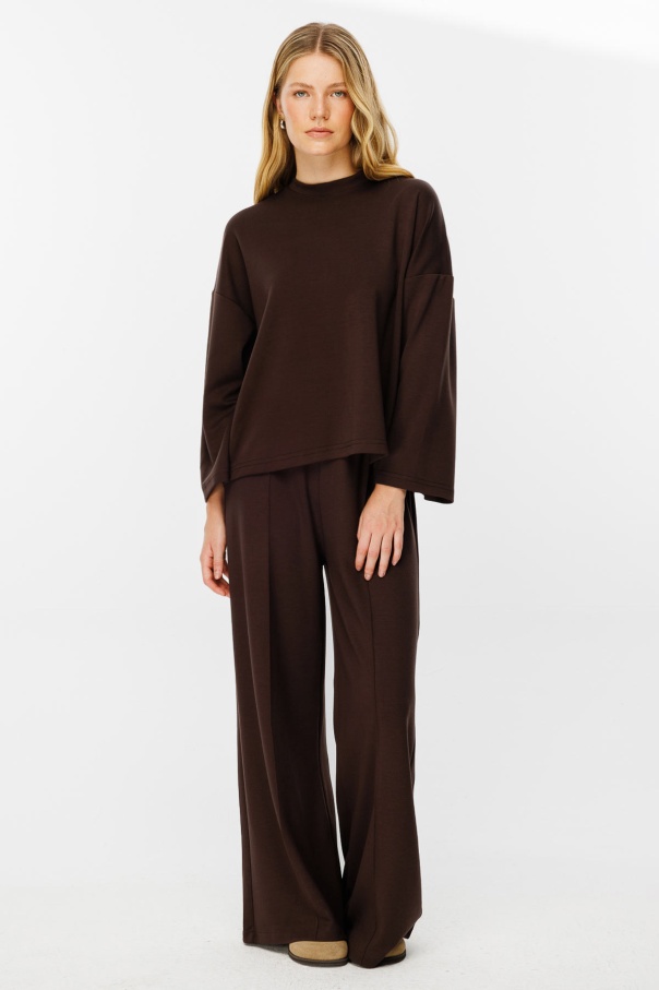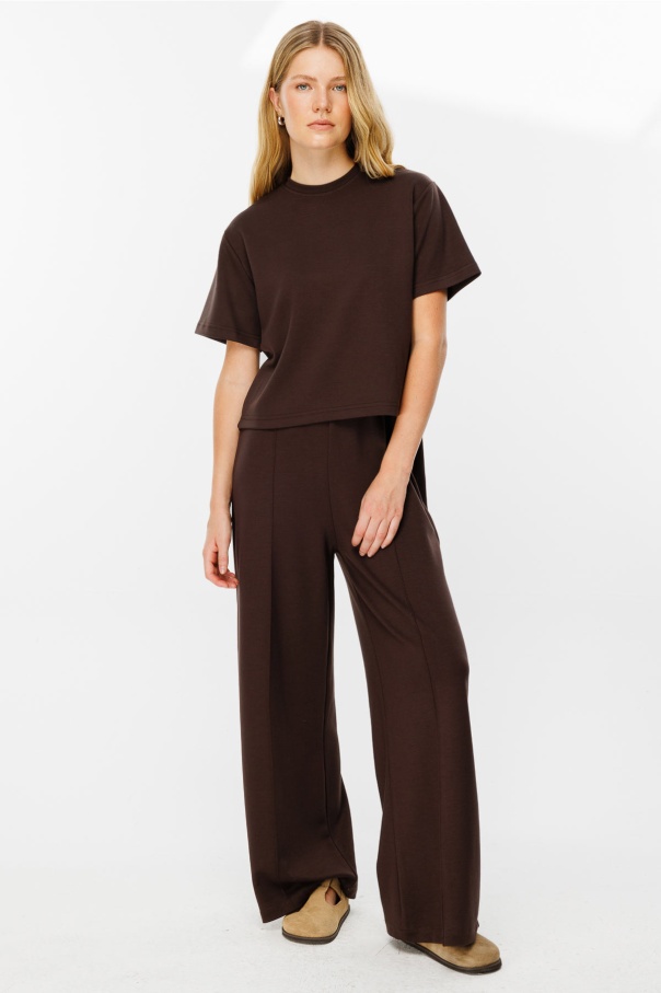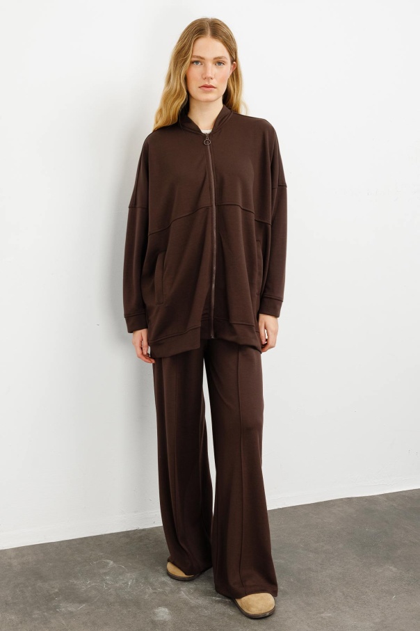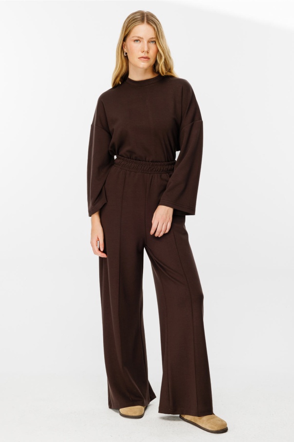 Rahat Kesim Bol Paça Kahve Pamuk Pantolon