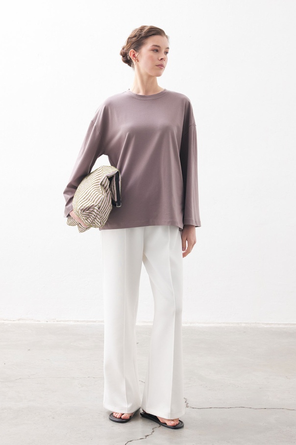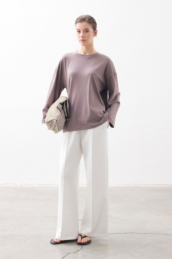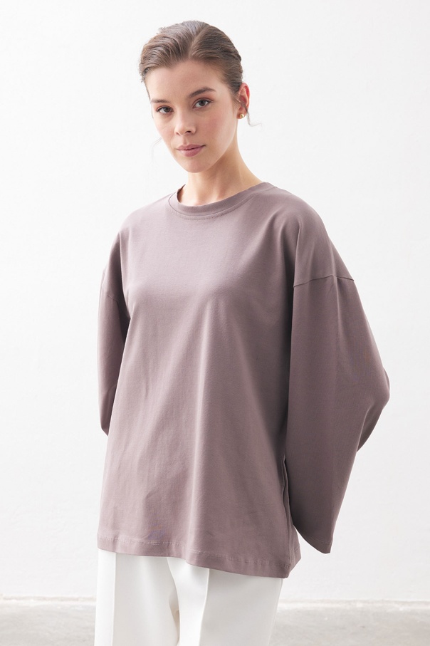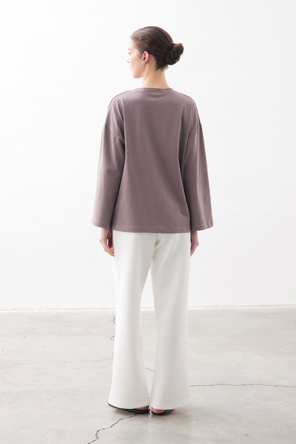 Rahat Kesim Pamuklu Toz Leylak Bluz
