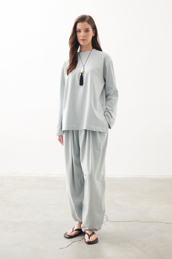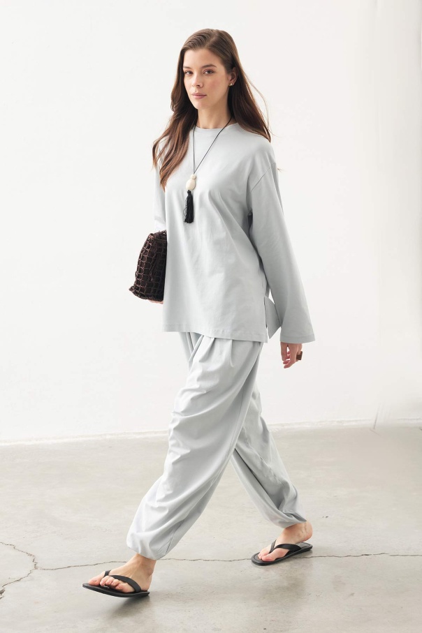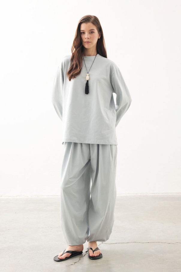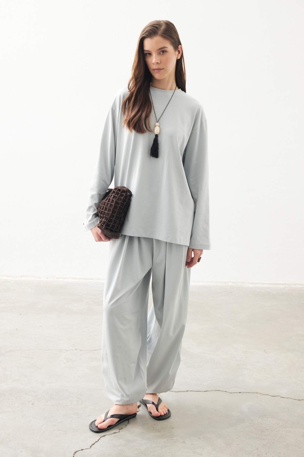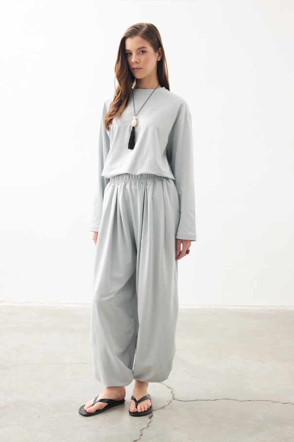 Rahat Kesim Şalvar Buz Mavi Pantolon Takım