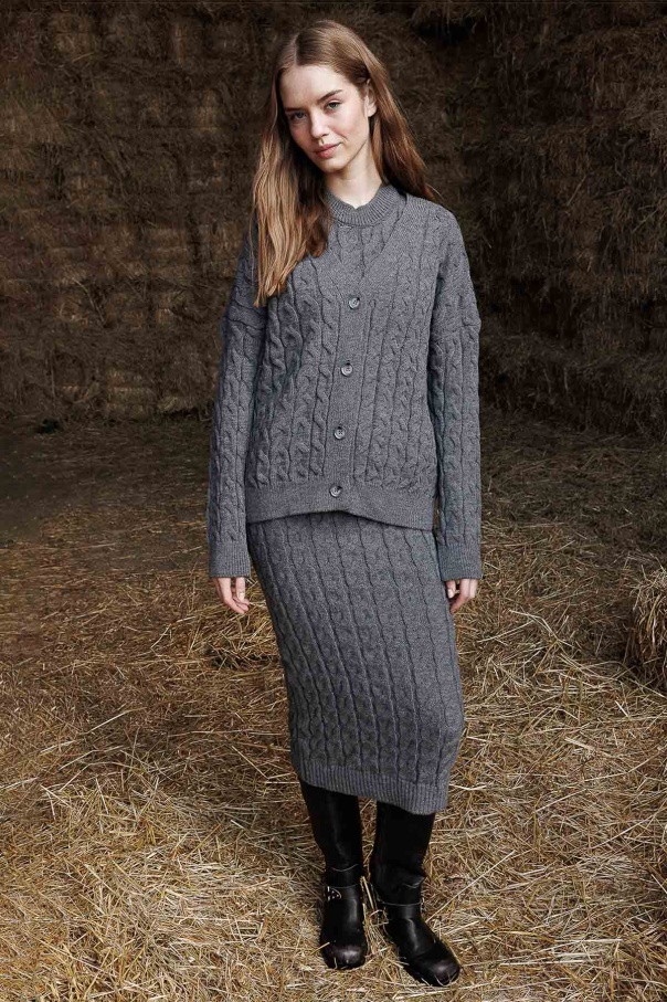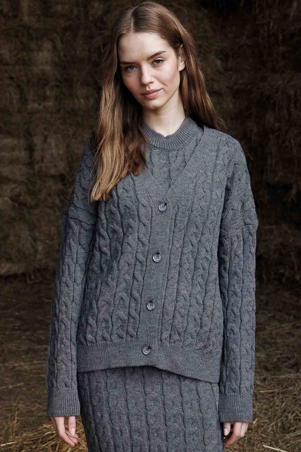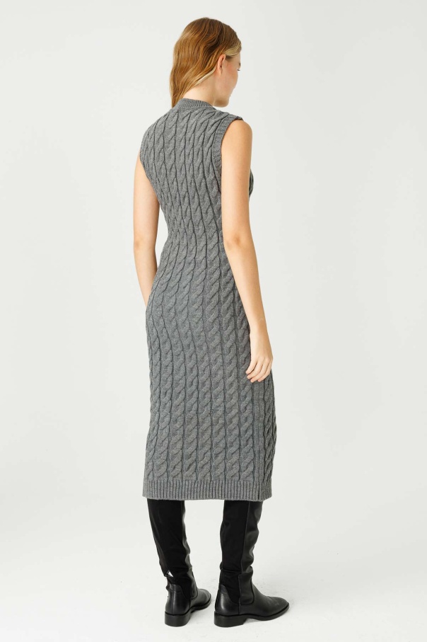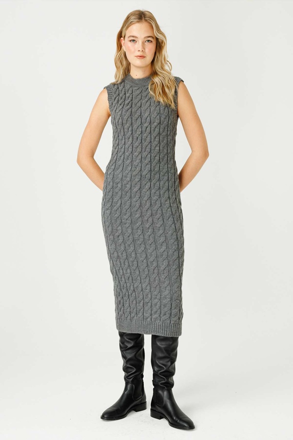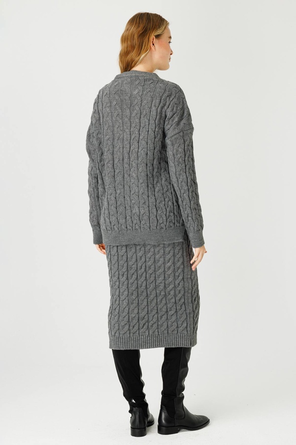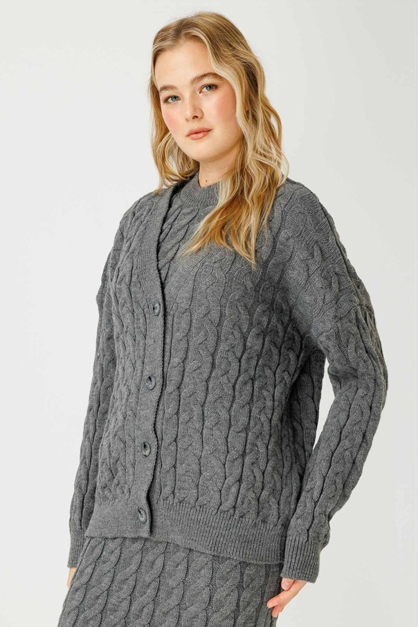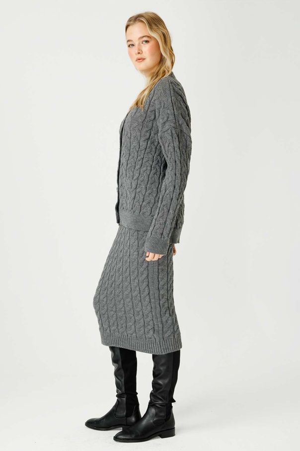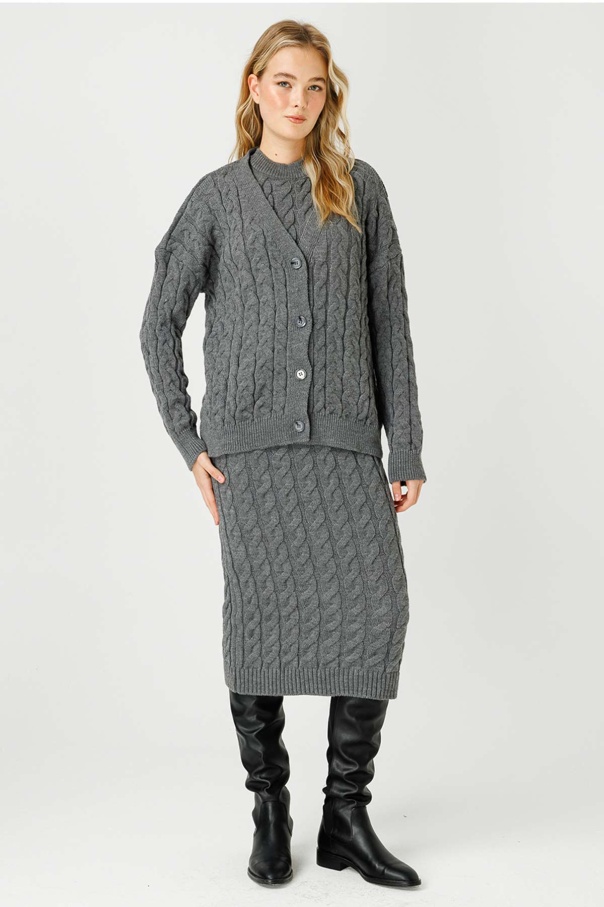 Saç Örgü Triko Antrasit Elbise Hırka Takım