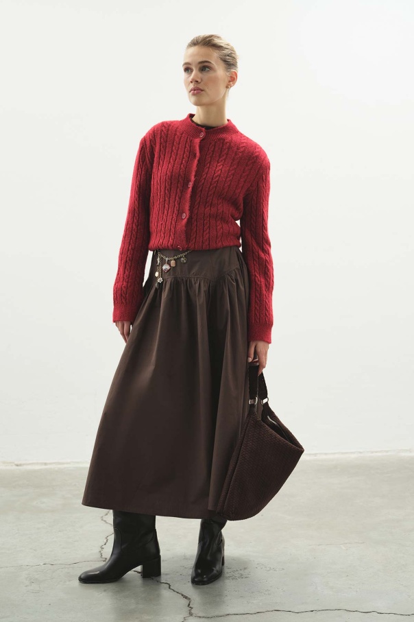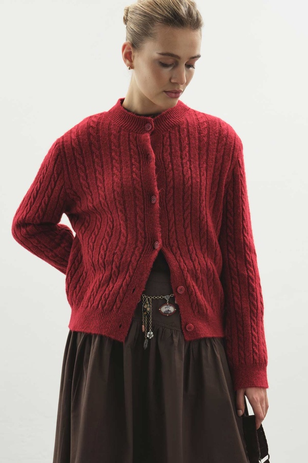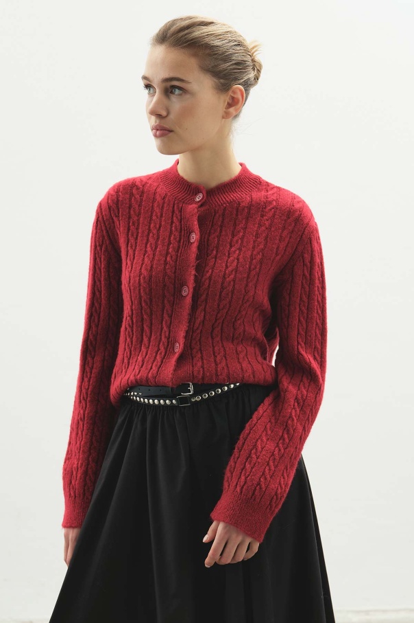 Saç Örgü Triko Kırmızı Hırka
