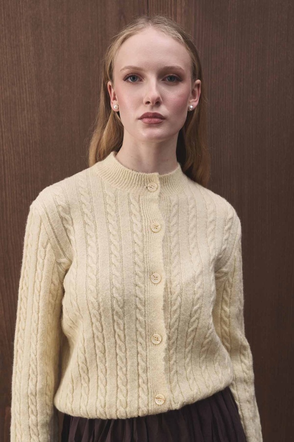 Saç Örgü Triko Tereyağı Sarısı Hırka