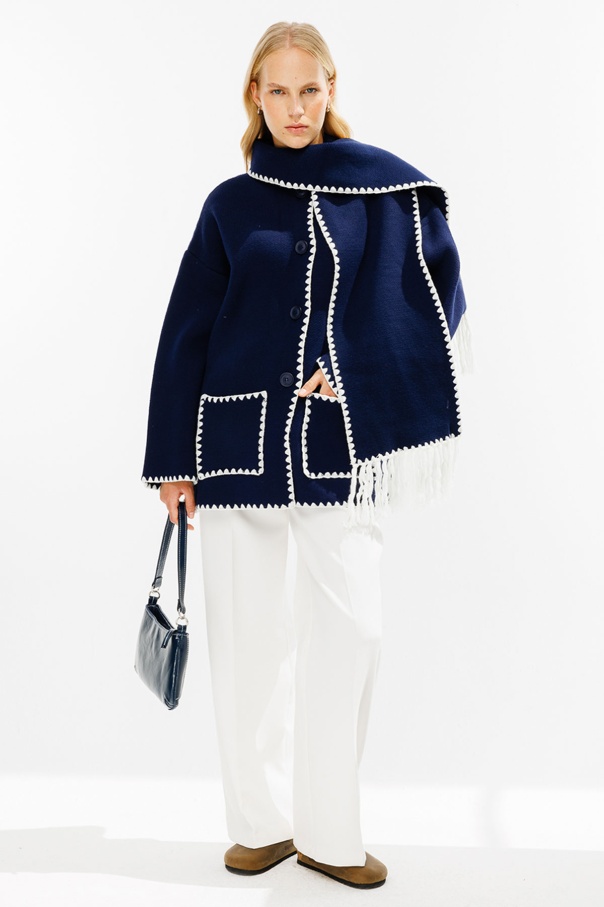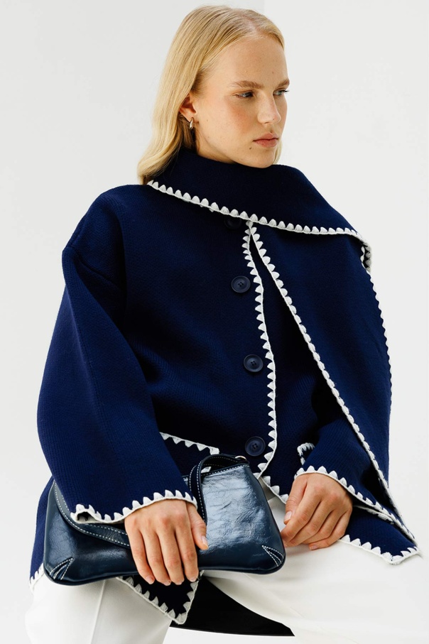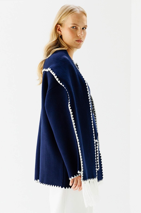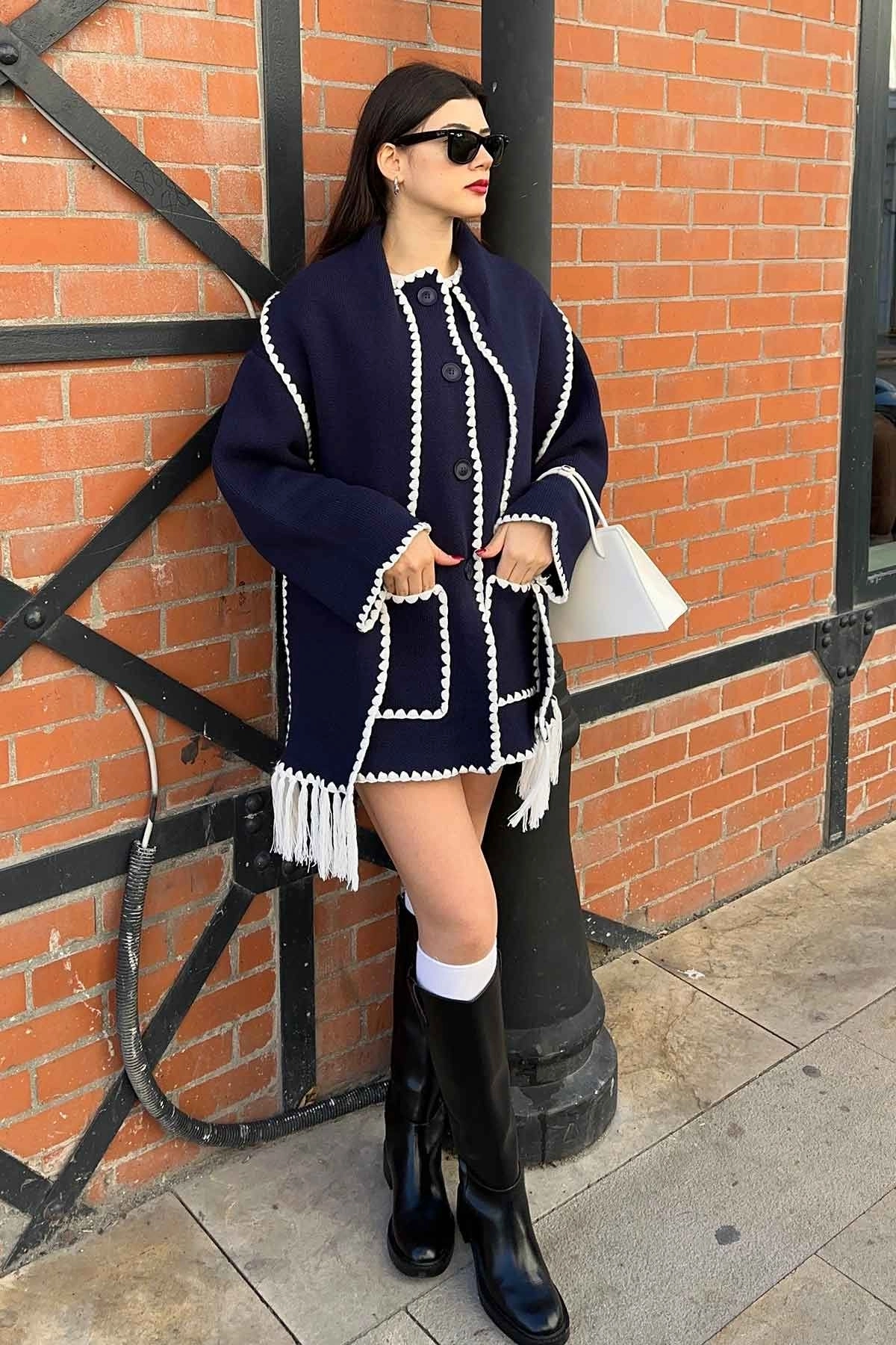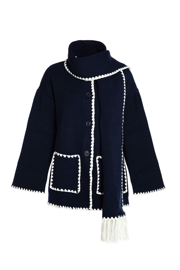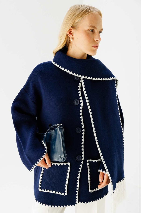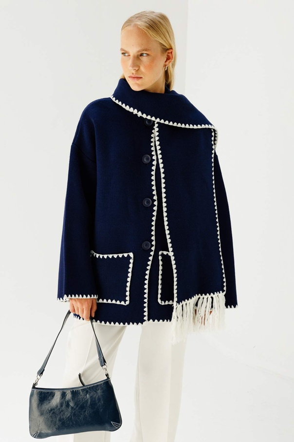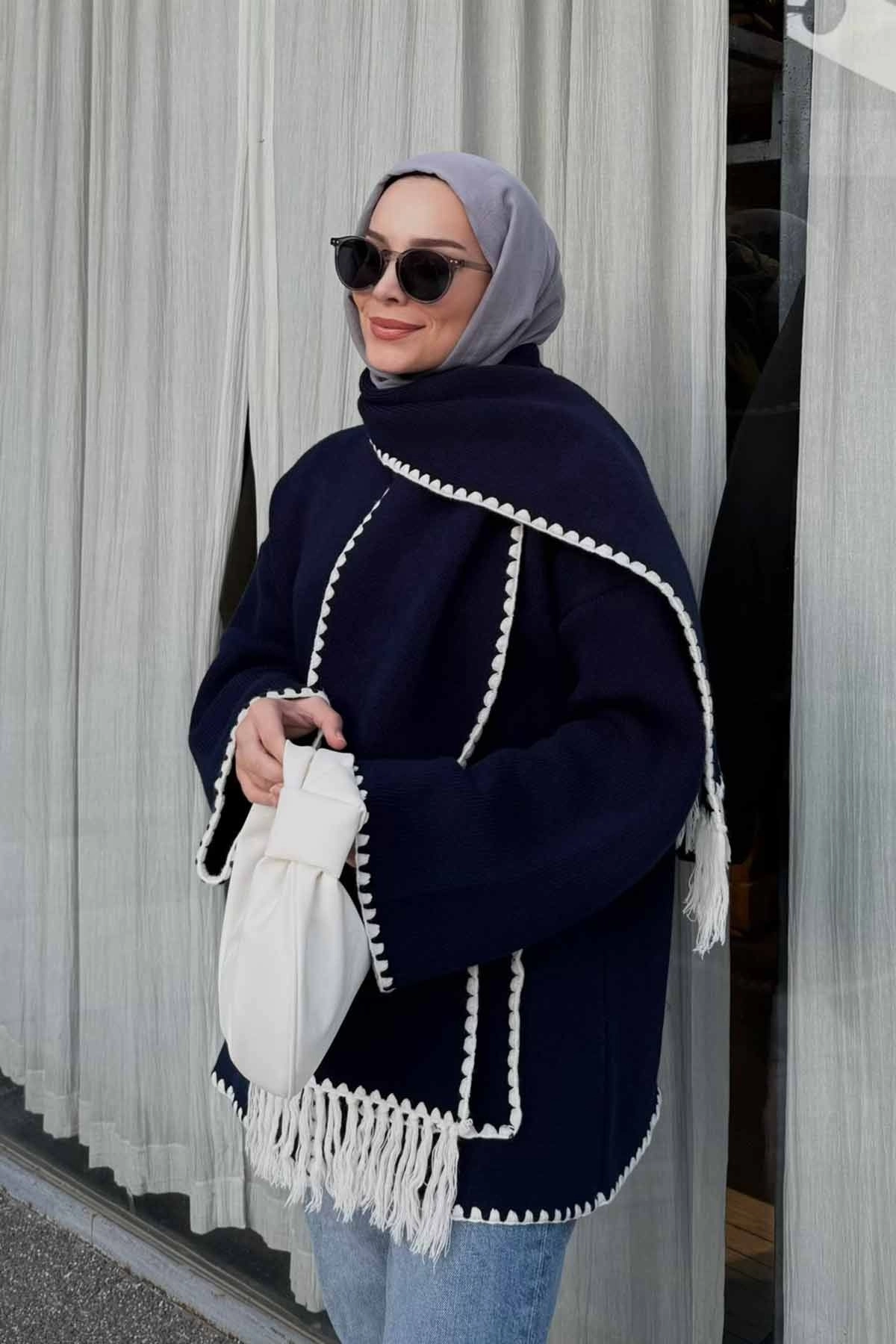 Şal Yaka Biyeli Triko Hırka - Lacivert
