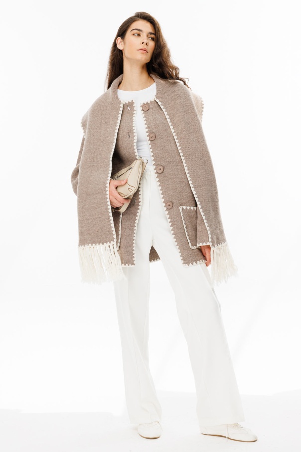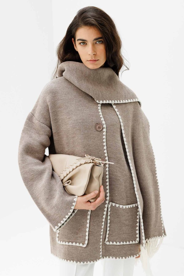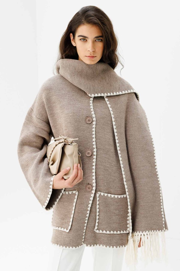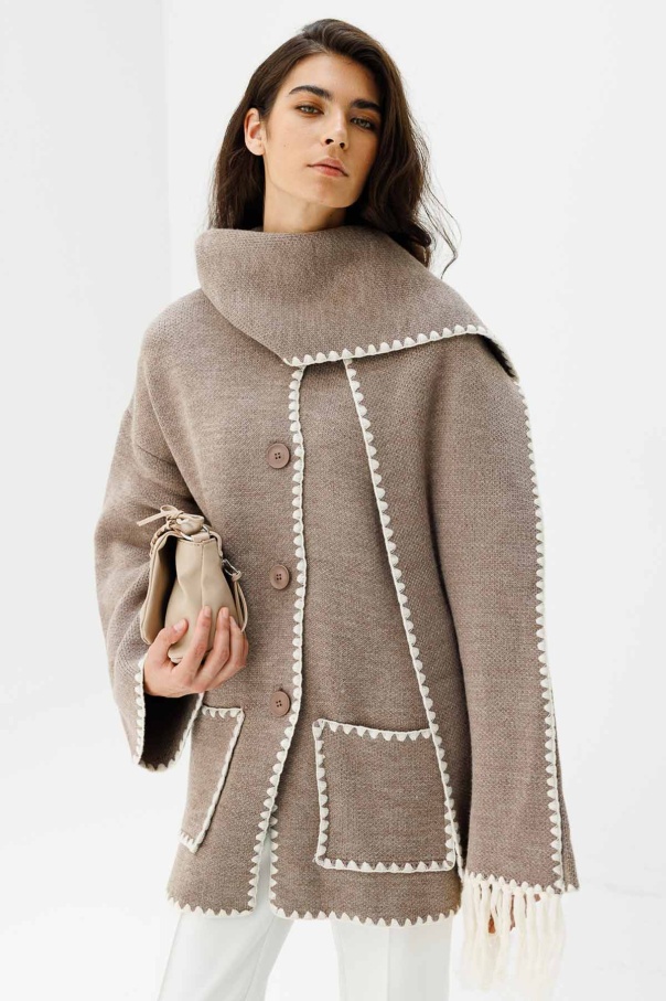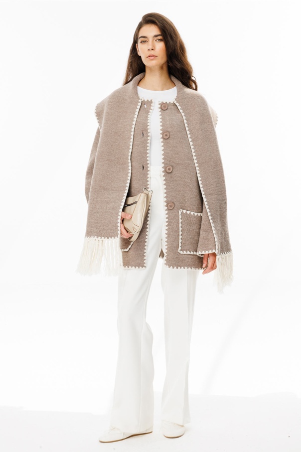 Şal Yaka Biyeli Triko Hırka - Vizon