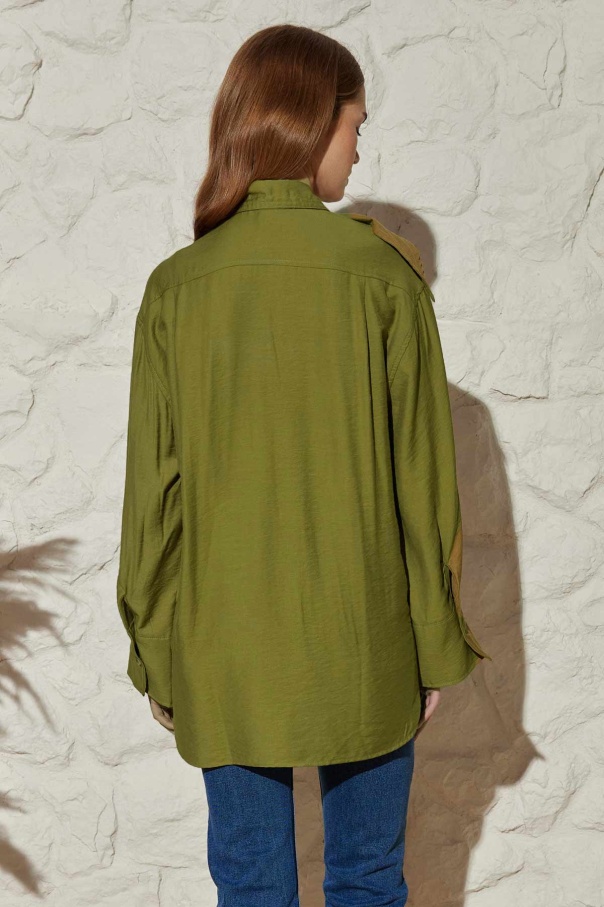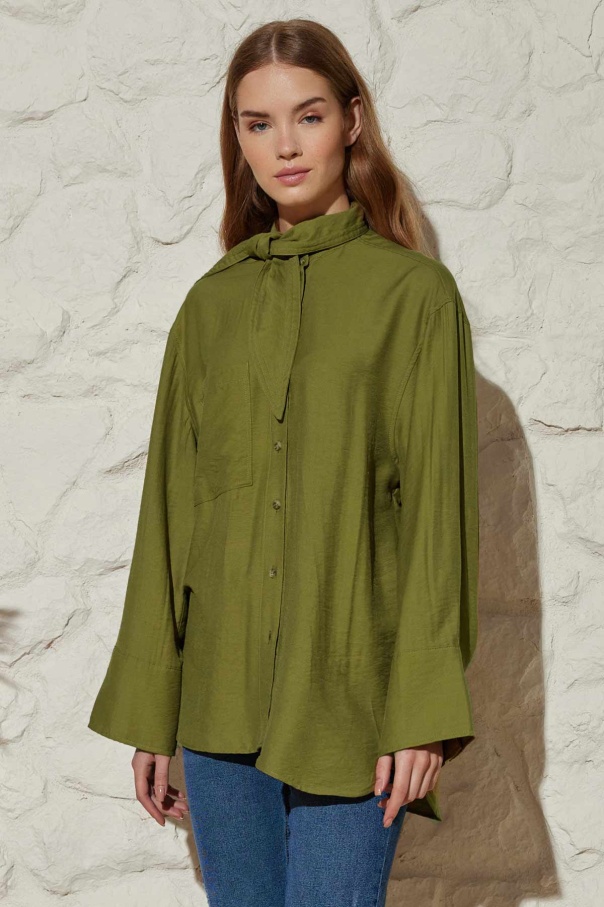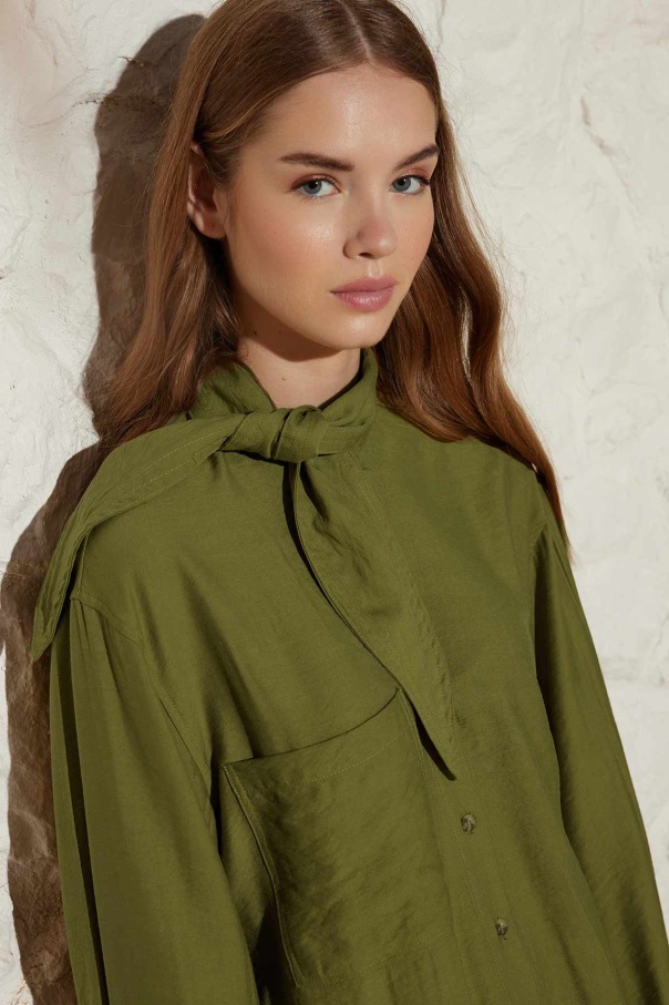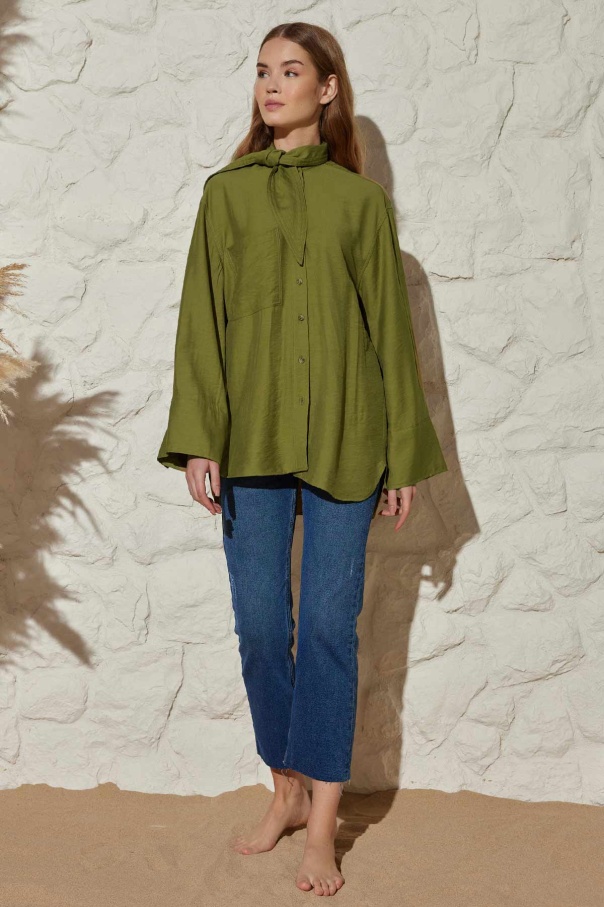 Yakası Bağlamalı Haki Modal Gömlek