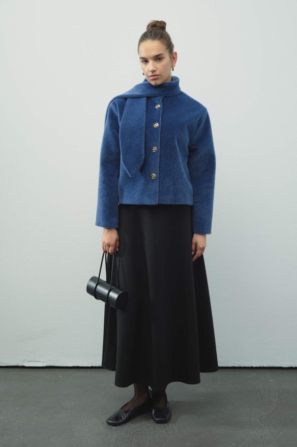 • YENİ Hooopstore - Fular Bağlama Detaylı Kısa İndigo Ceket Hooopstore - Fular Bağlama Detaylı Kısa İndigo Ceket (1)