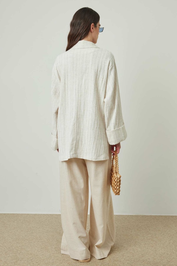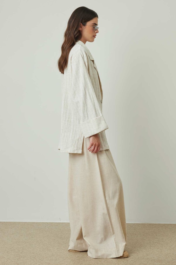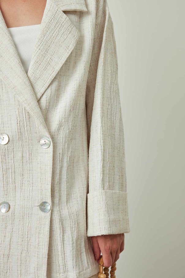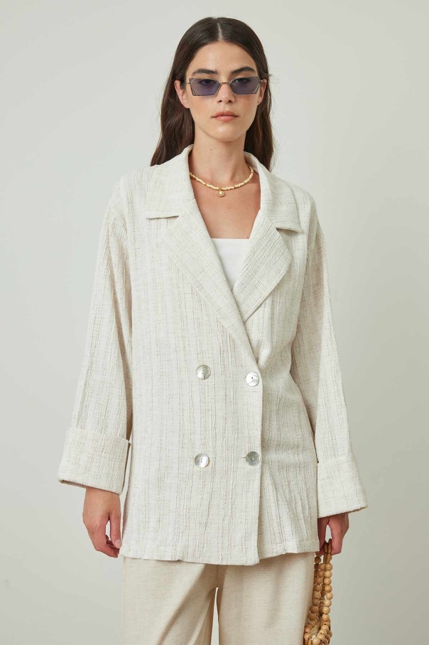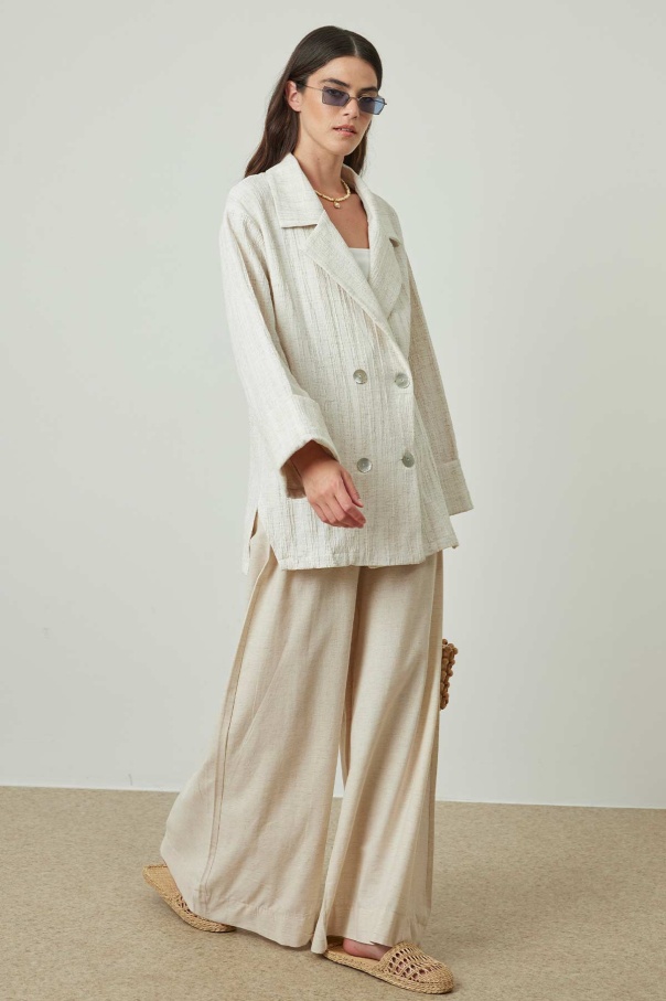 Sedef Düğmeli Bej Keten Ceket