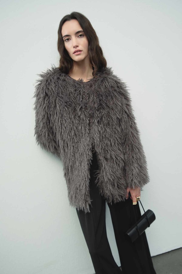 Selection Kabarık Tüylü Antrasit Ceket