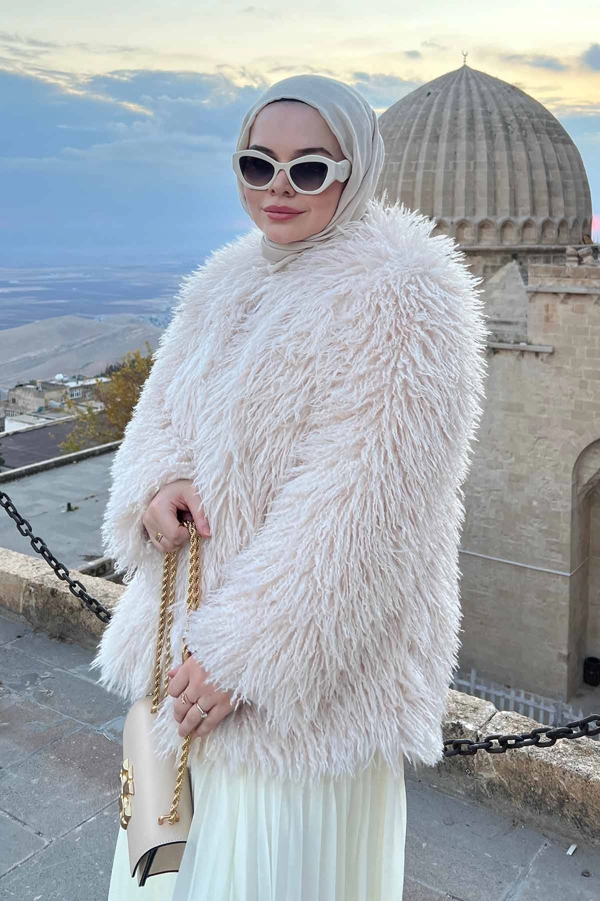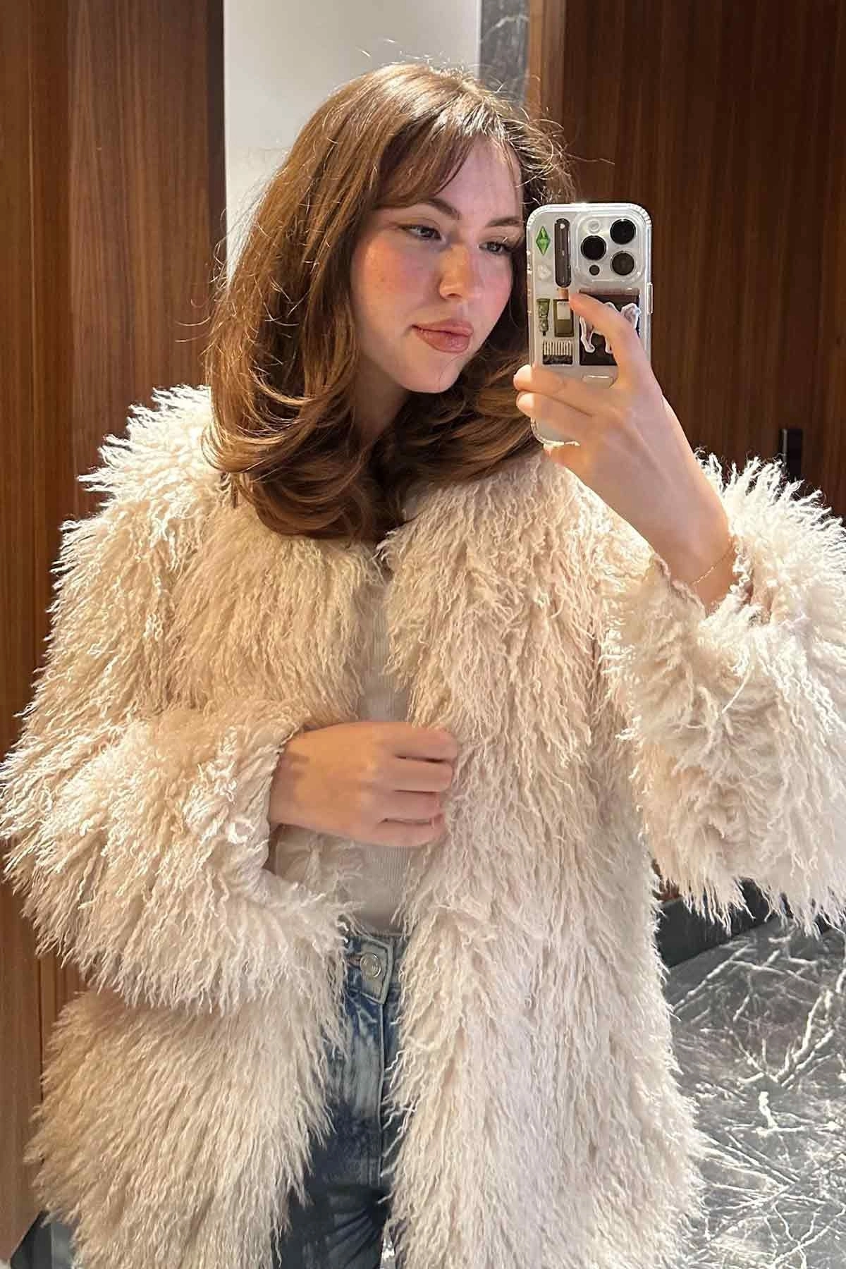 Selection Kabarık Tüylü Ekru Ceket