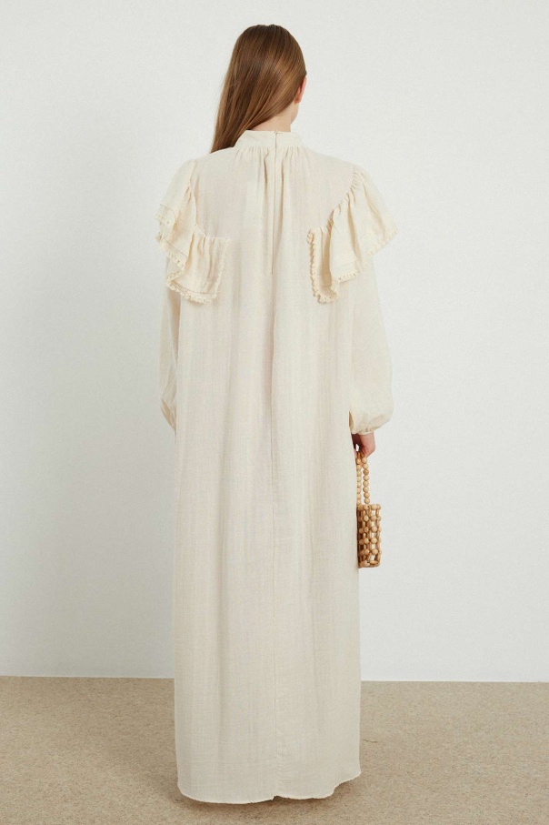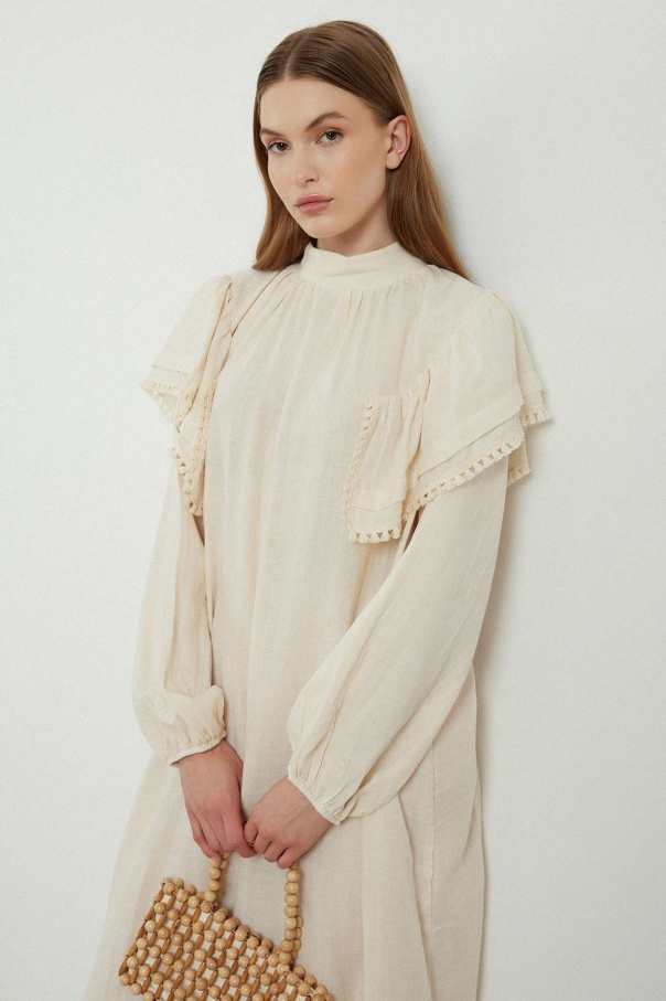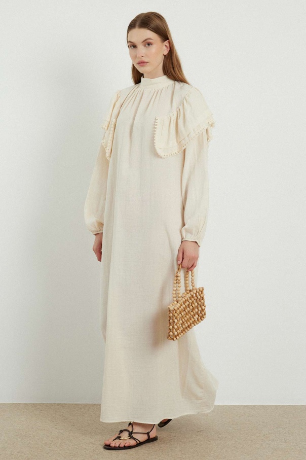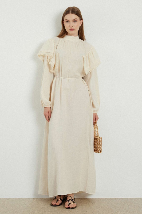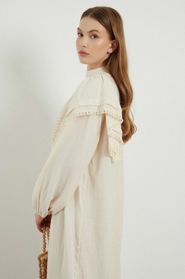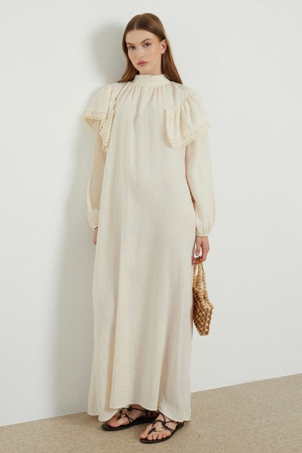 Şerit Detaylı Organik Naturel Müslin Elbise
