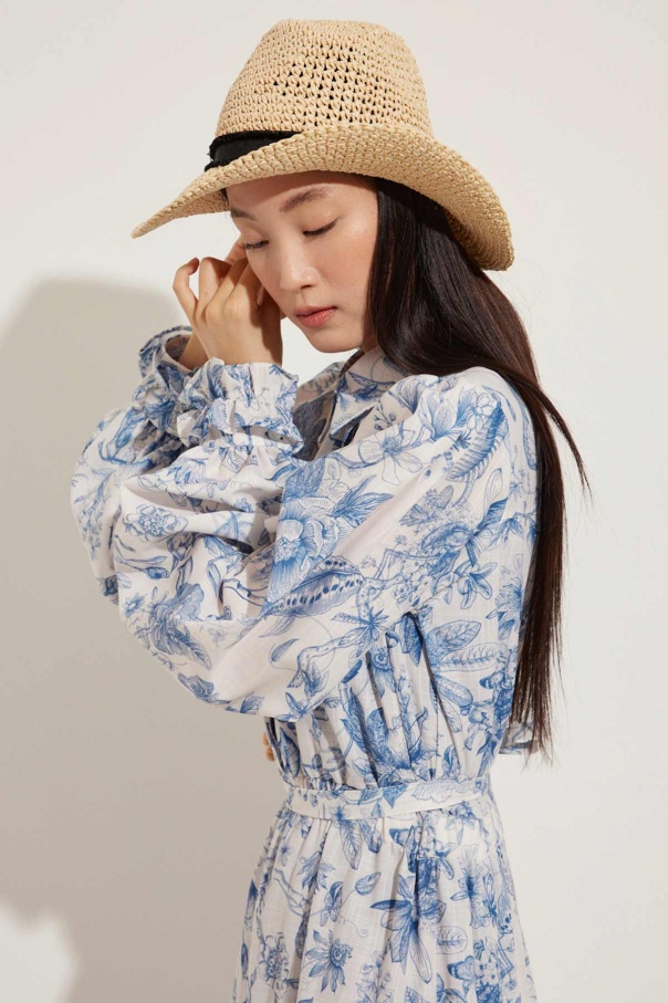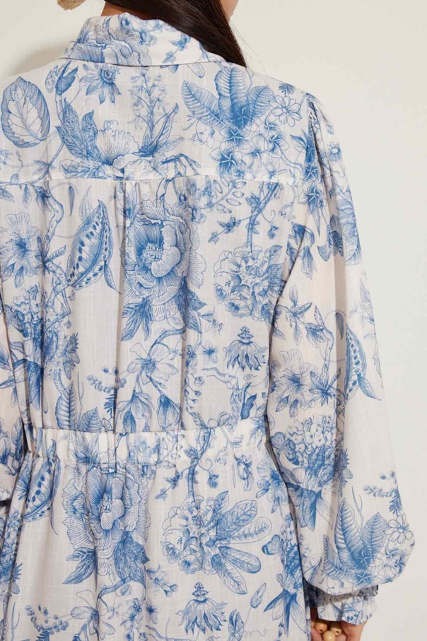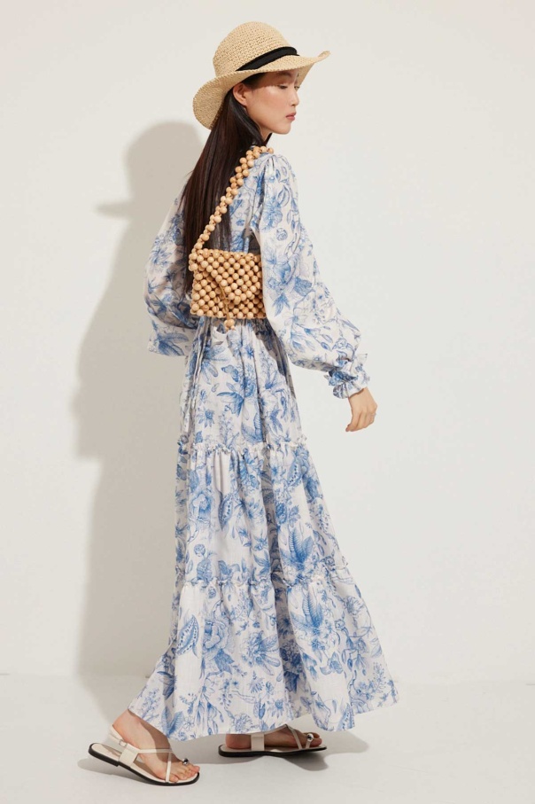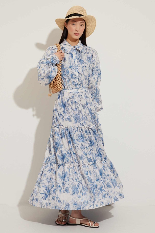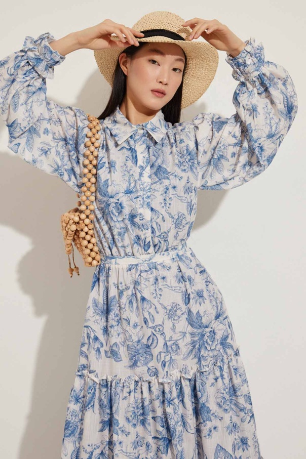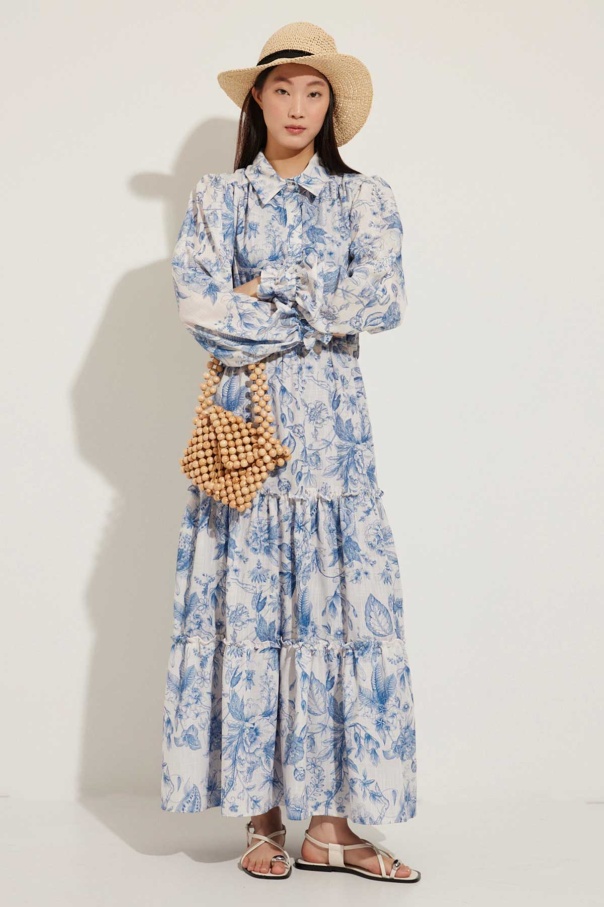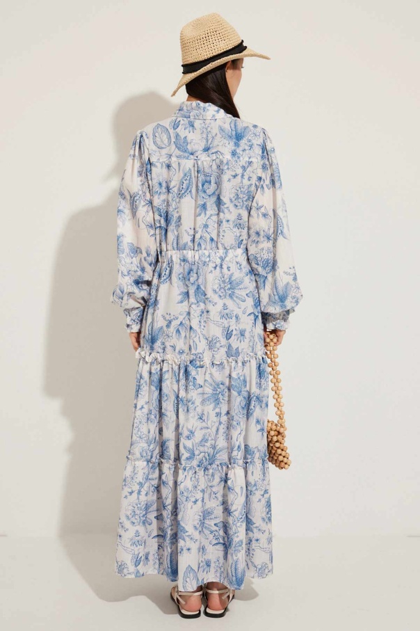 Soft Floral Keten Mavi Elbise