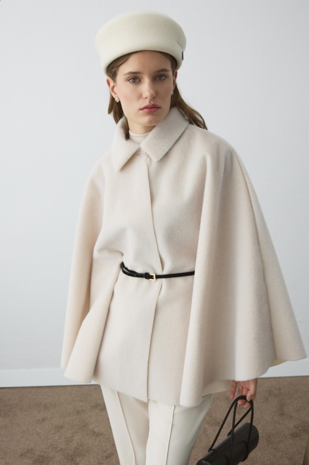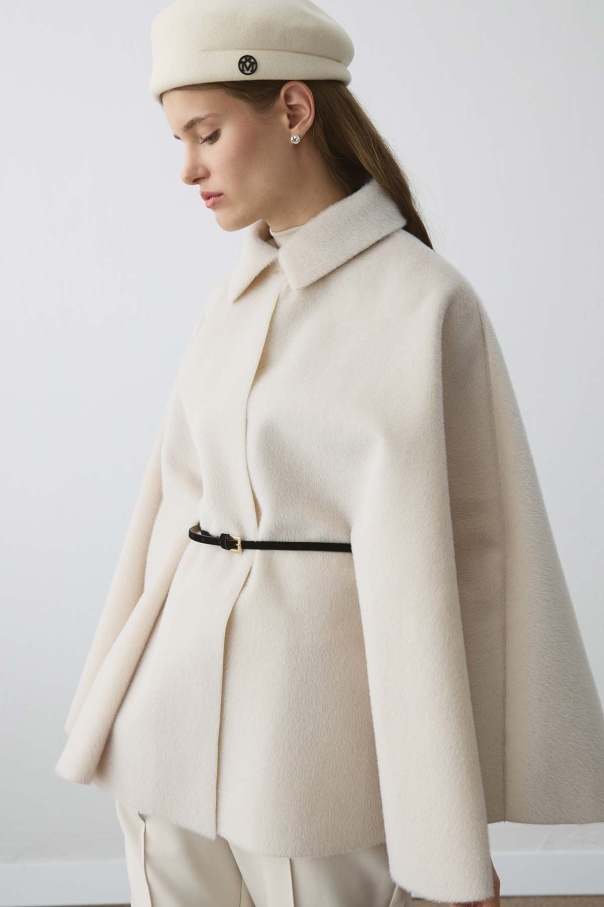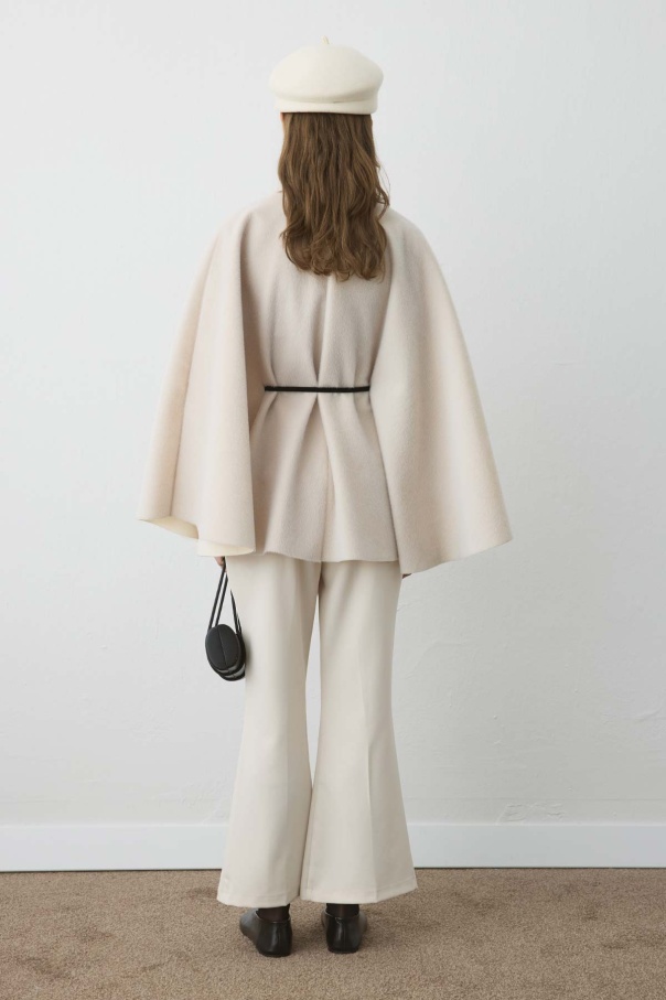 Süet Kemer Detaylı Pelerin Taş Kaban