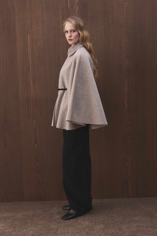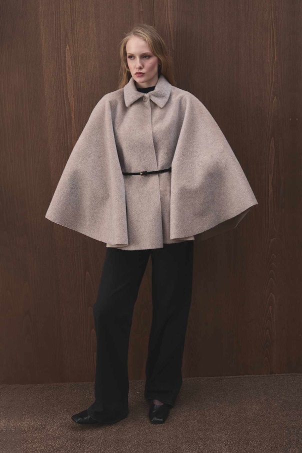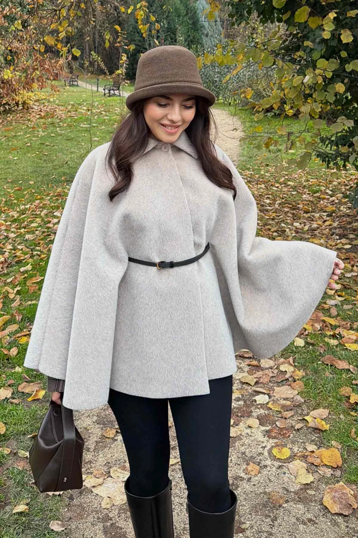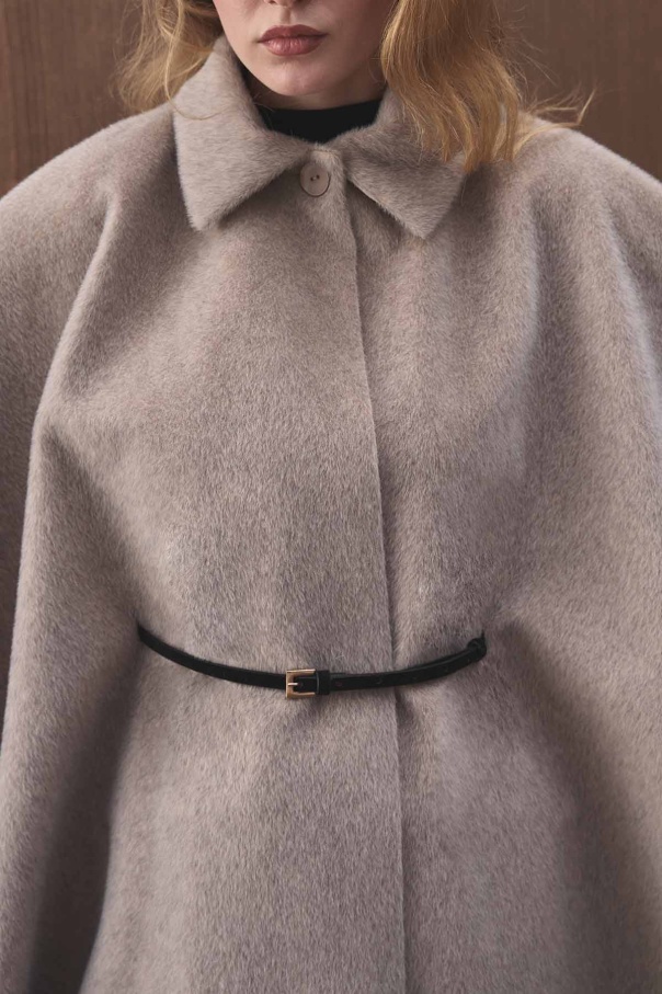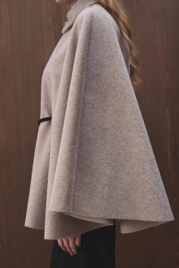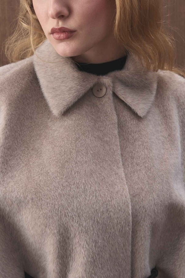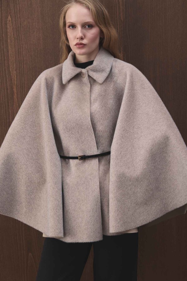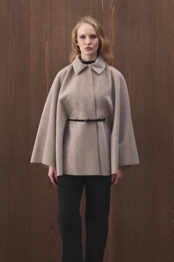 Süet Kemer Detaylı Pelerin Vizon Kaban