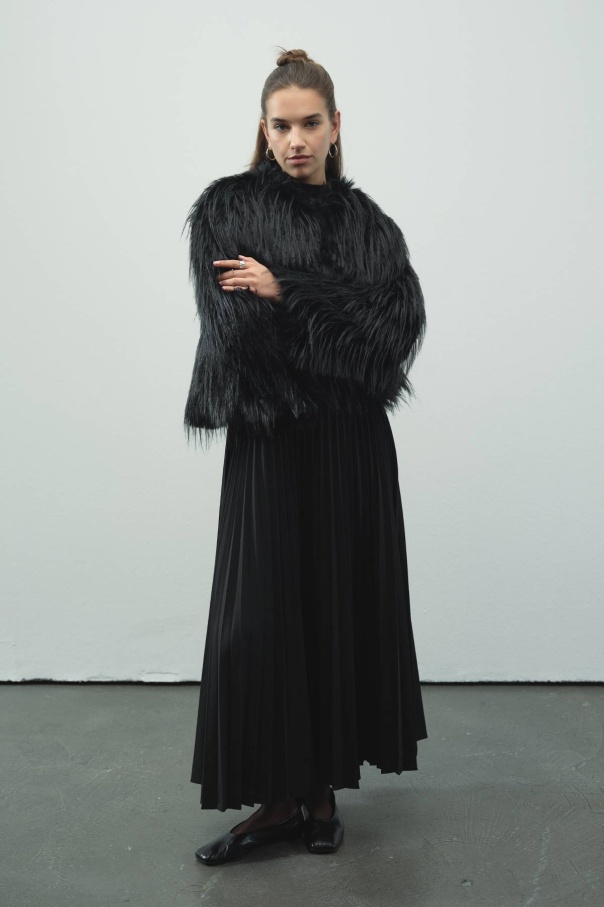 Suni Kürk Kısa Siyah Ceket