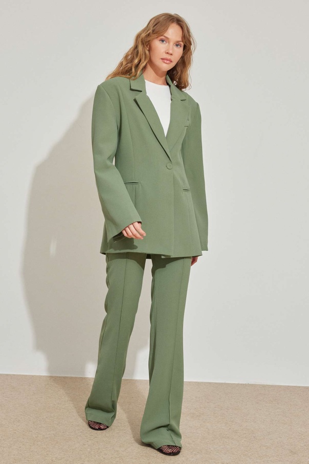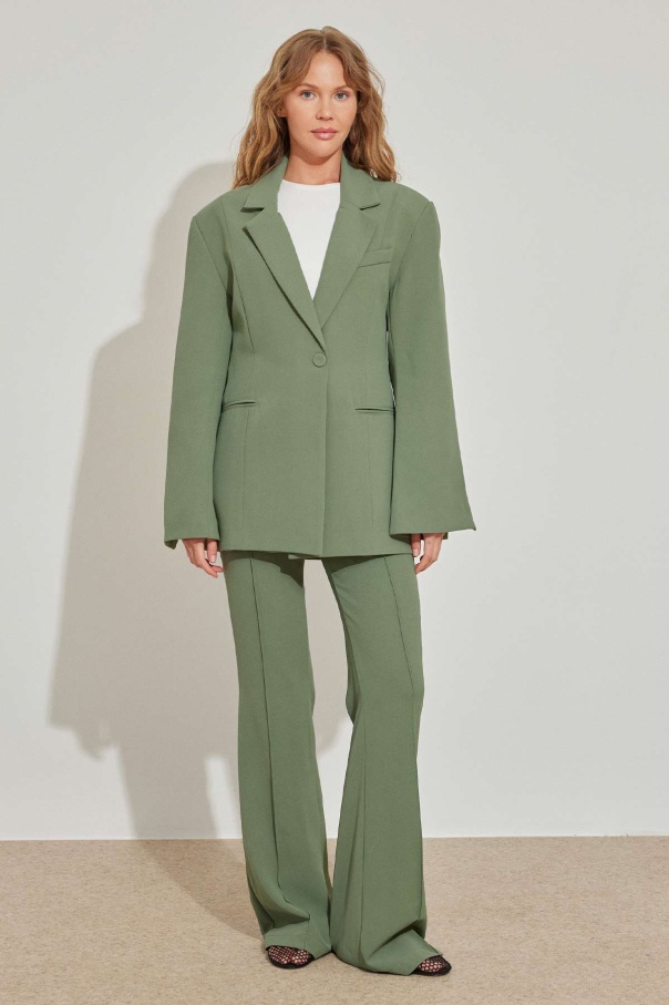 Tek Düğmeli Kruvaze Fit Blazer Haki Ceket