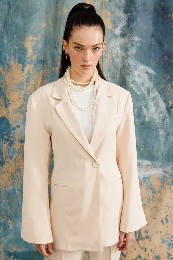 Tek Düğmeli Kruvaze Fit Blazer Taş Ceket