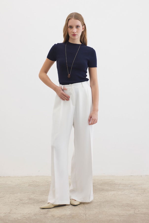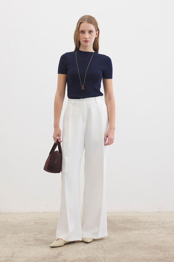 Tek Pileli Palazzo Ekru Pantolon