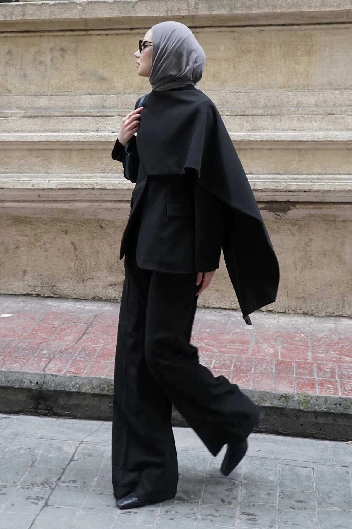Tek Pileli Palazzo Siyah Pantolon