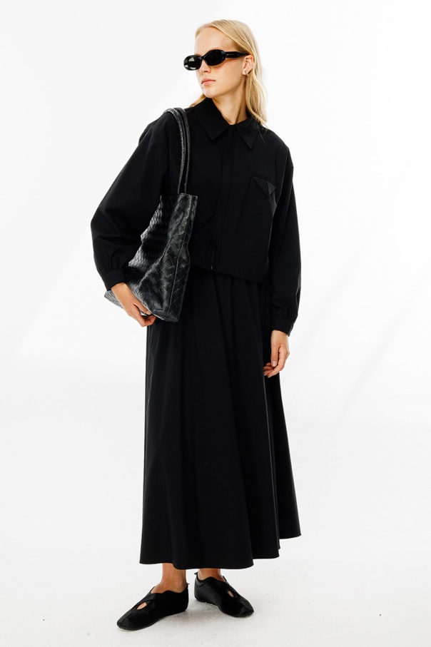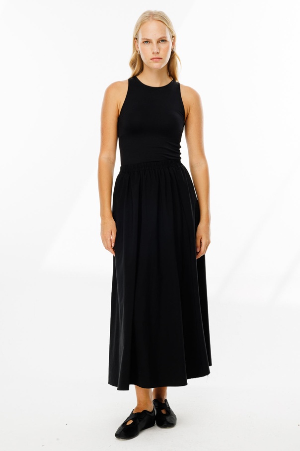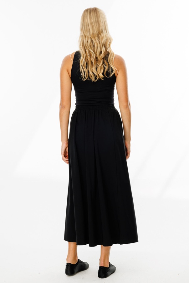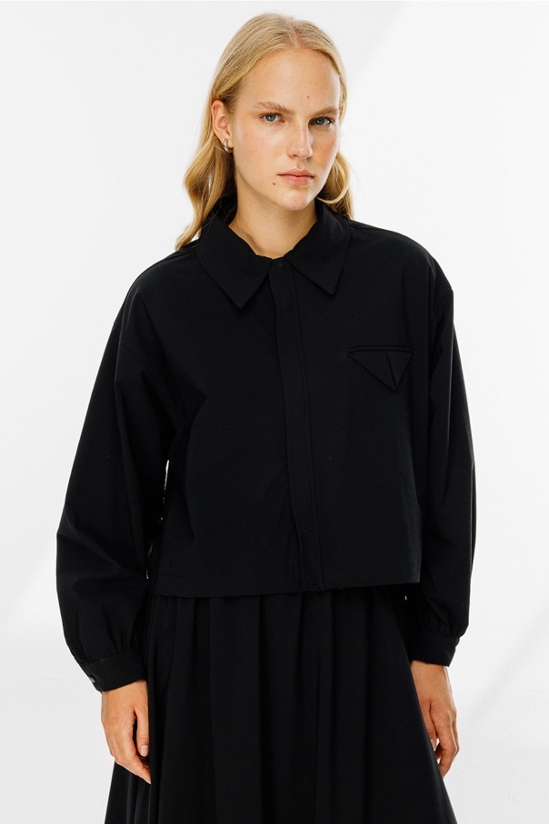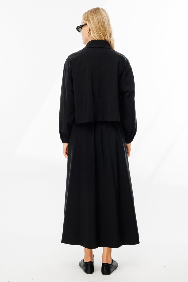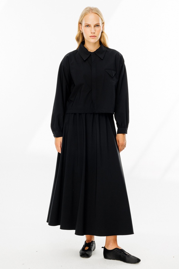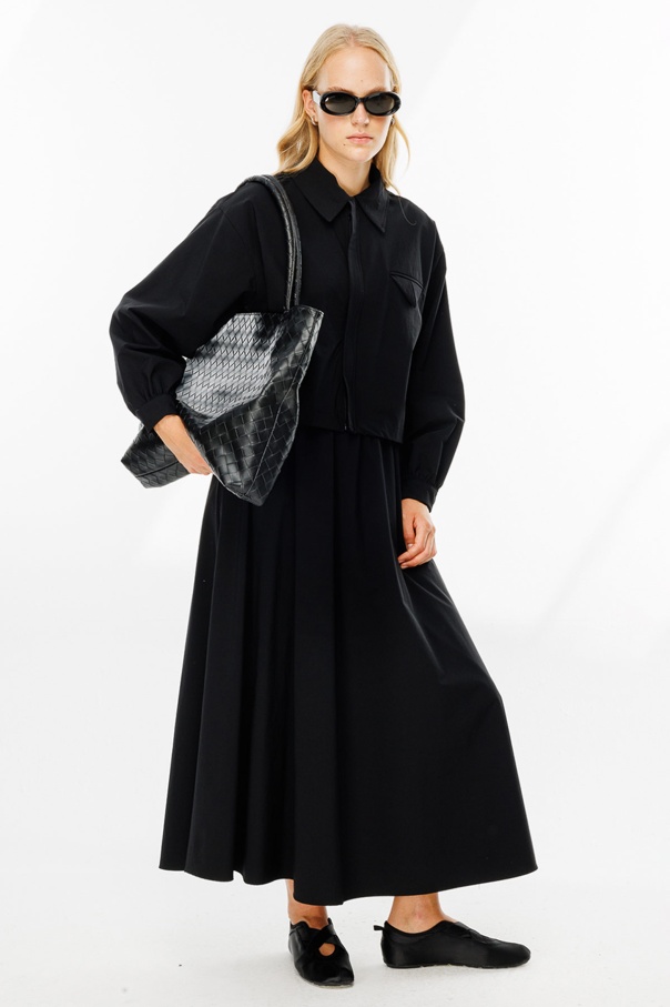 Teknik Kumaş Cep Kapaklı Etekli Siyah Takım