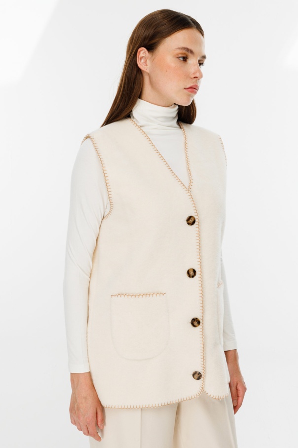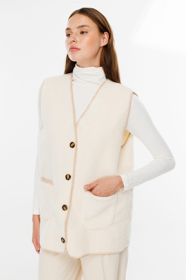 Tığ İşi Kırık Beyaz Kovboy Yelek