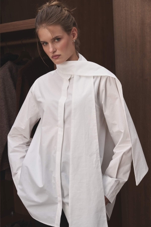 Premium Çıkarılabilir Bağlama Detaylı Poplin Beyaz Gömlek