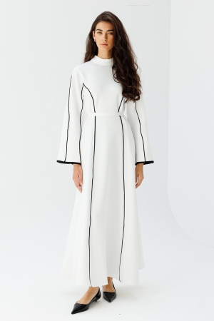Biyeli Scuba Beyaz Elbise