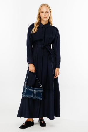 Premium Trenç Lacivert Elbise